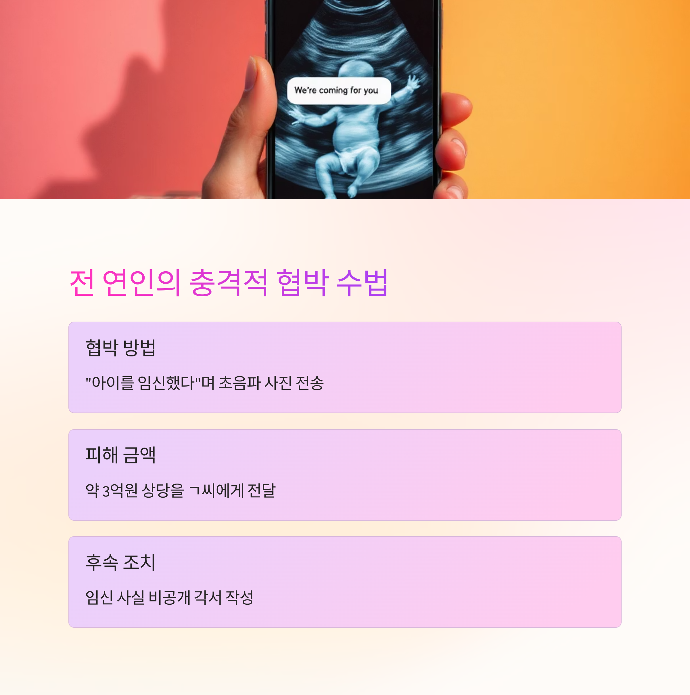 초음파 사진 보내 “아이 가졌다”…협박으로 3억 요구