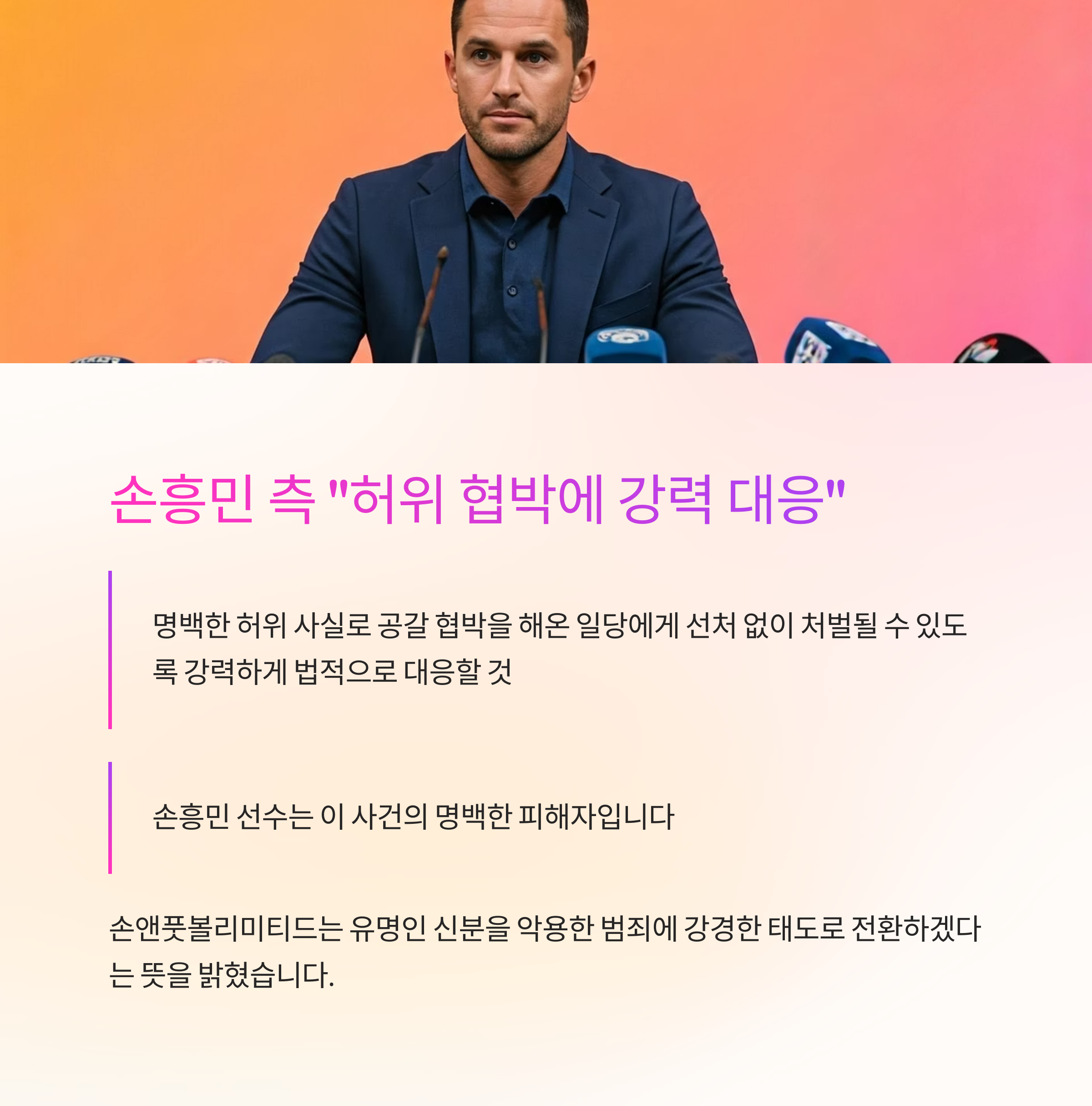 "손흥민 선수는 이 사건의 명백한 피해자입니다"