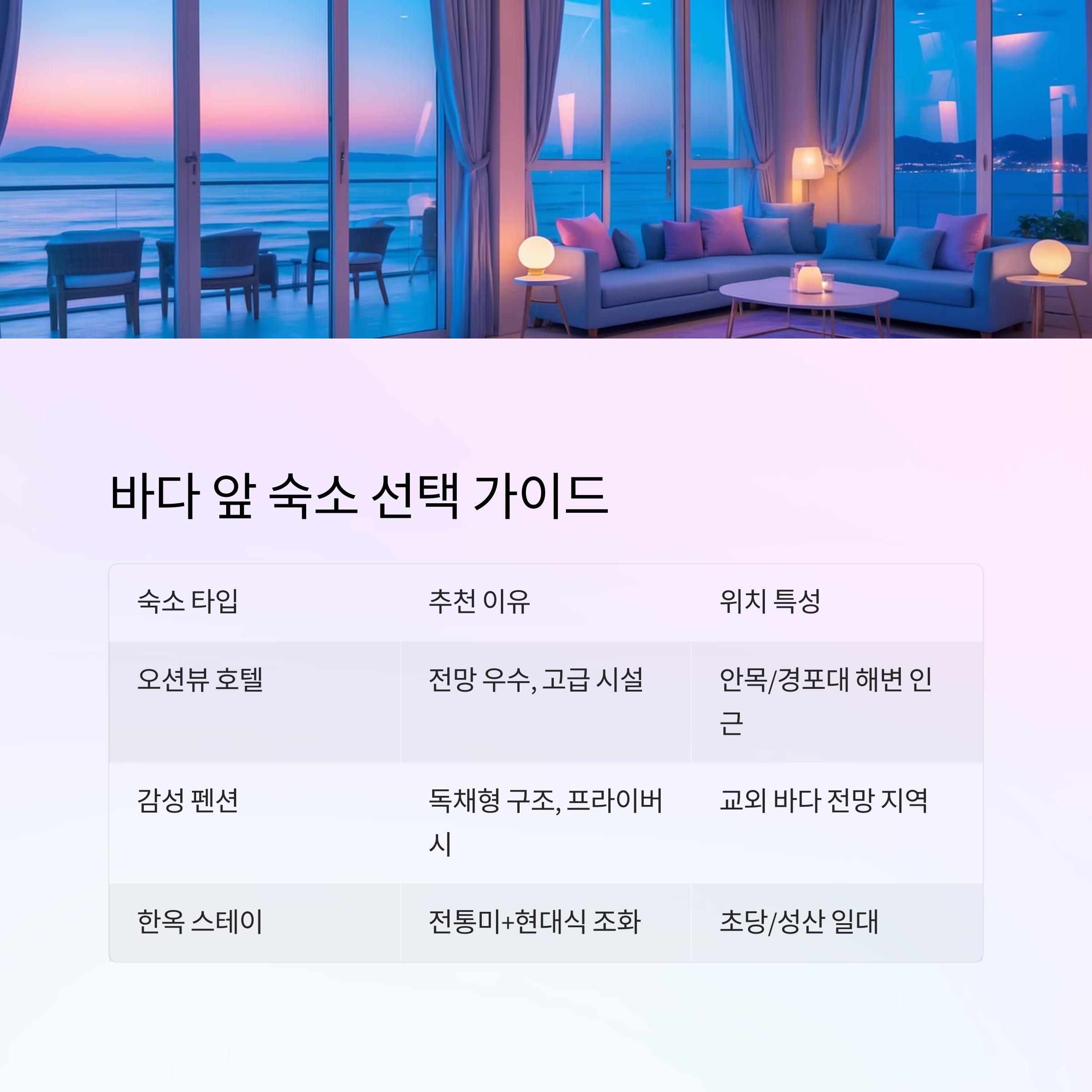 로맨틱 밤을 위한 바다 앞 숙소 선택 가이드