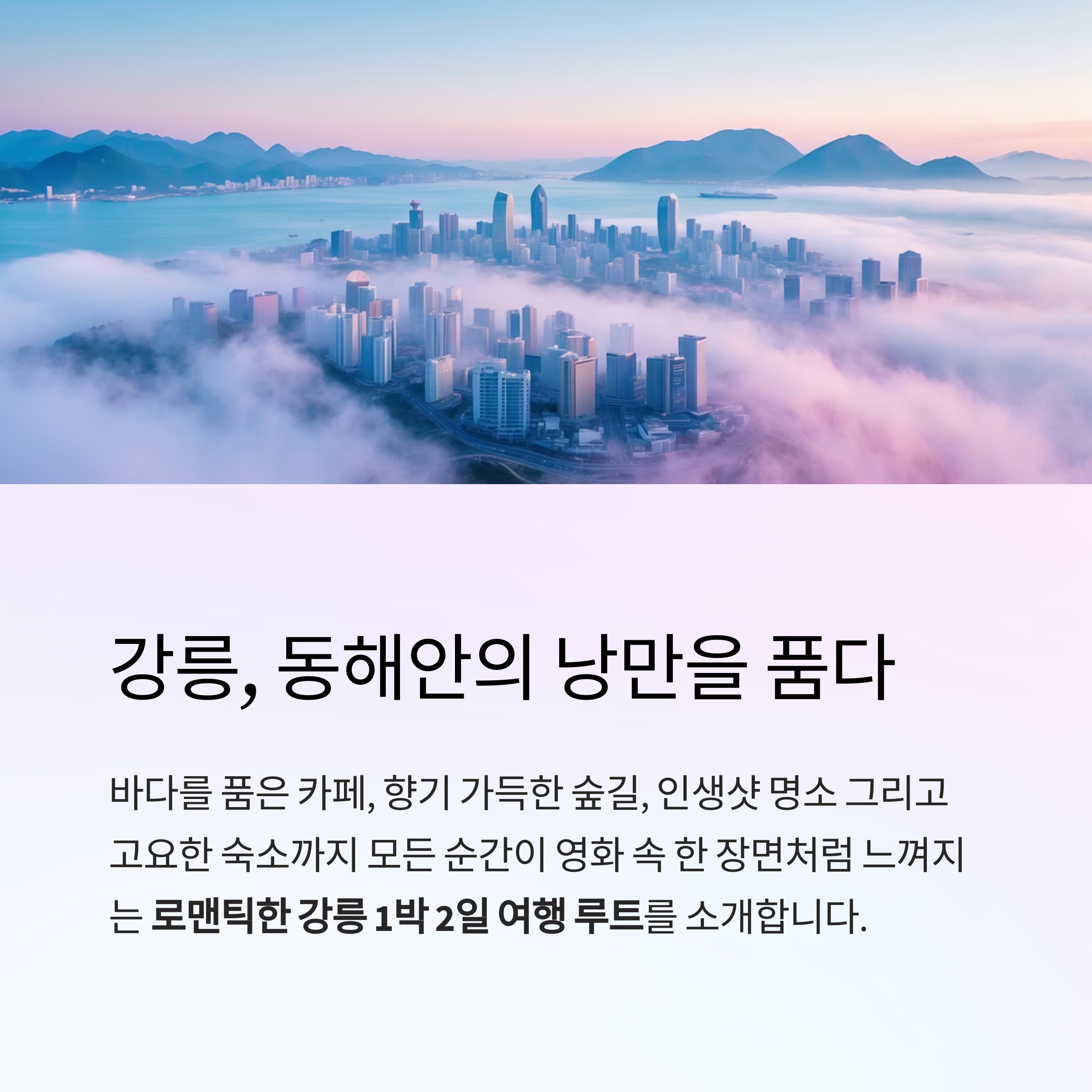 모든 순간이 영화 속 한 장면처럼 느껴지는 여행지를 찾는다면, 강릉이 제격입니다.