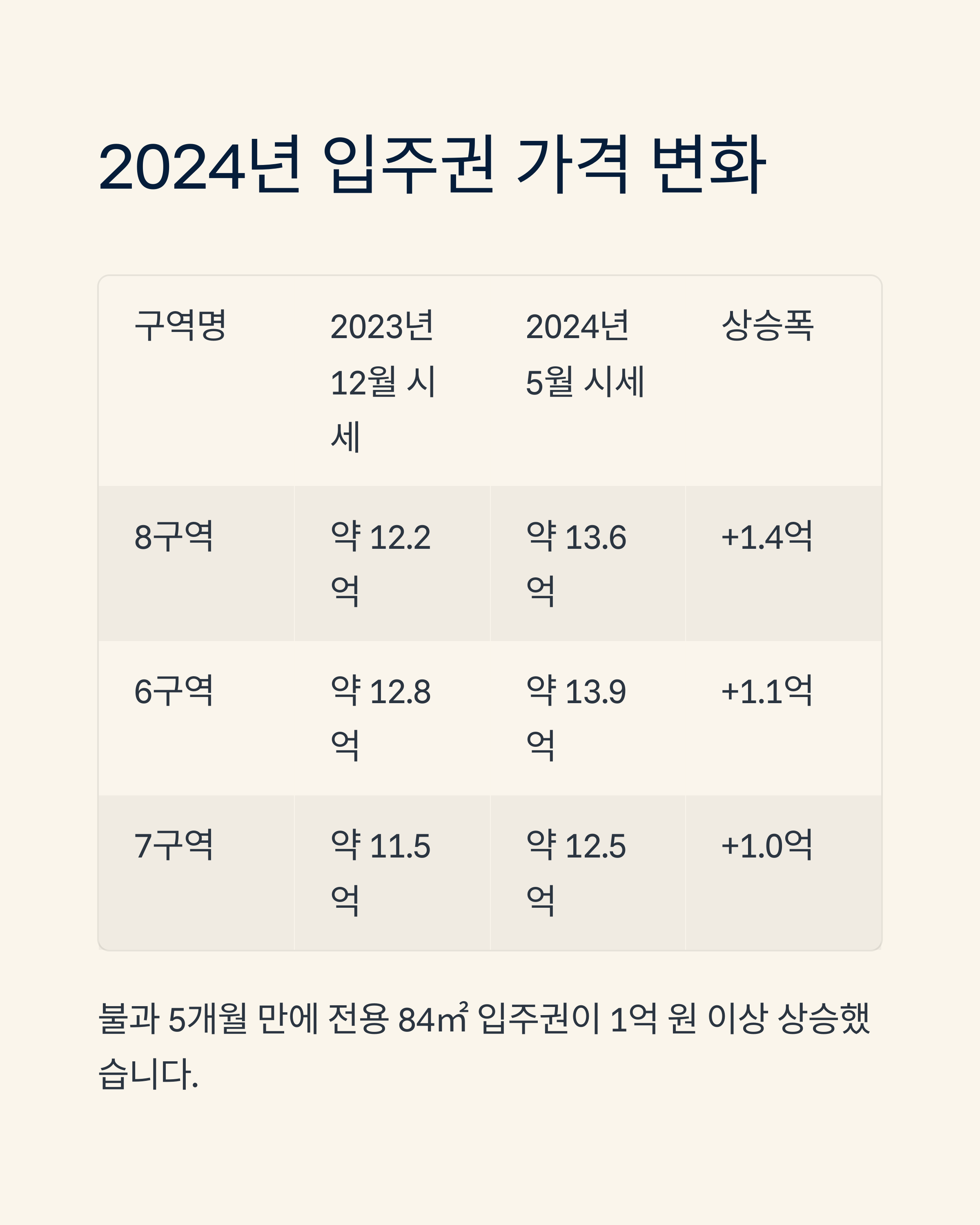 핵심: "공급보다 수요가 많아, 입주권 시세는 2025년 상반기까지 우상향 전망"