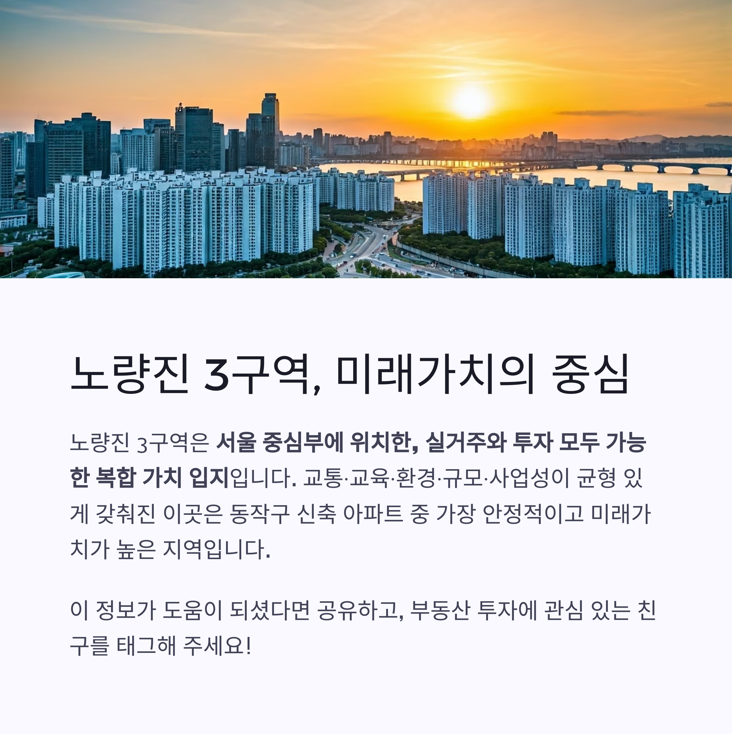 그중에서도 ‘노량진 3구역’은 교통, 교육, 환경, 개발 속도 등 다양한 요소에서 강점을 지니며