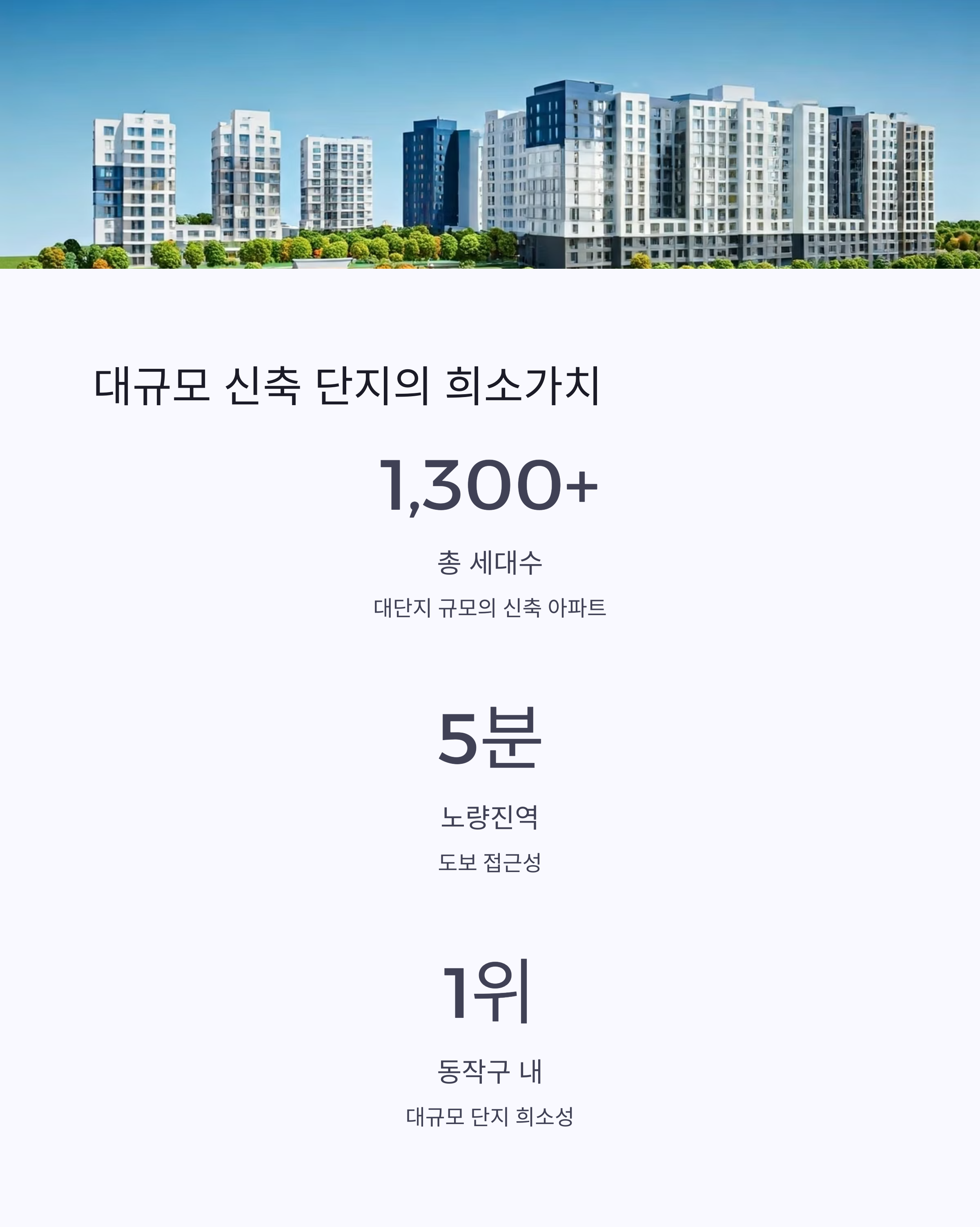 동작구 신축 아파트 중에서도 가장 안정적이고 미래가치가 높은 지역으로 손꼽힙니다.