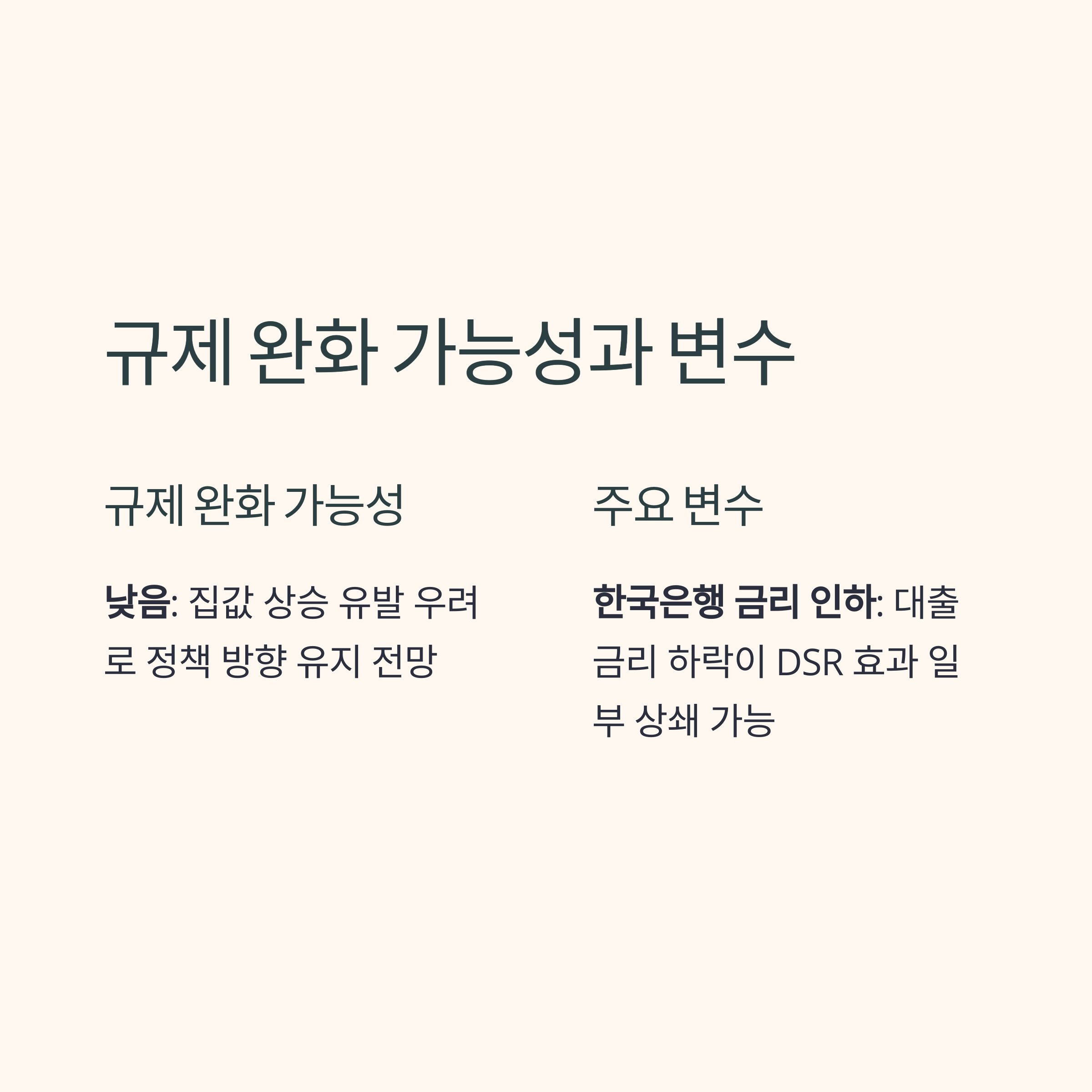대출금리가 낮아지면, DSR 기준은 여전히 높아도 체감 이자 부담은 줄어들 수 있기 때문입니다.