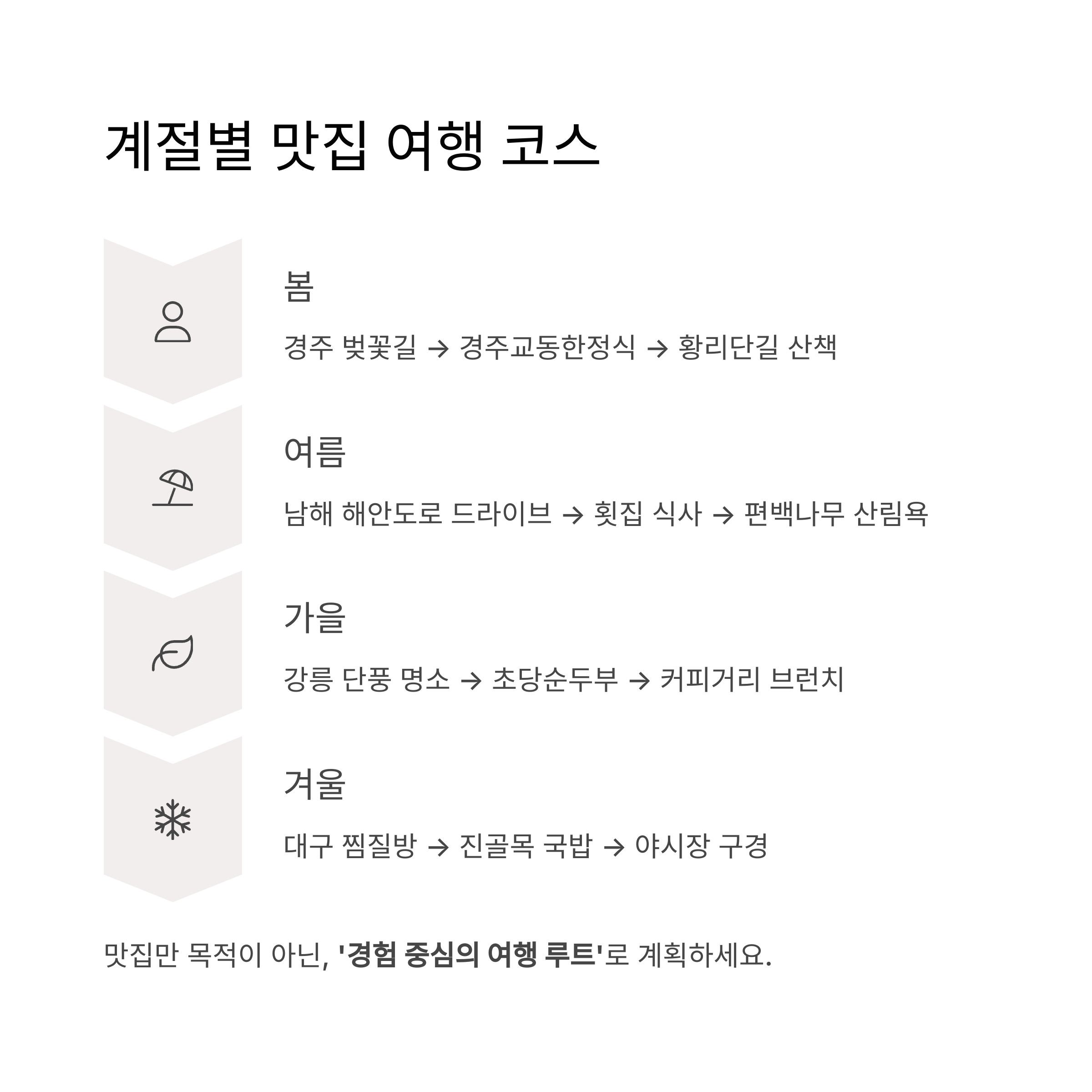각 계절의 맛집을 여행 동선으로 연결하면