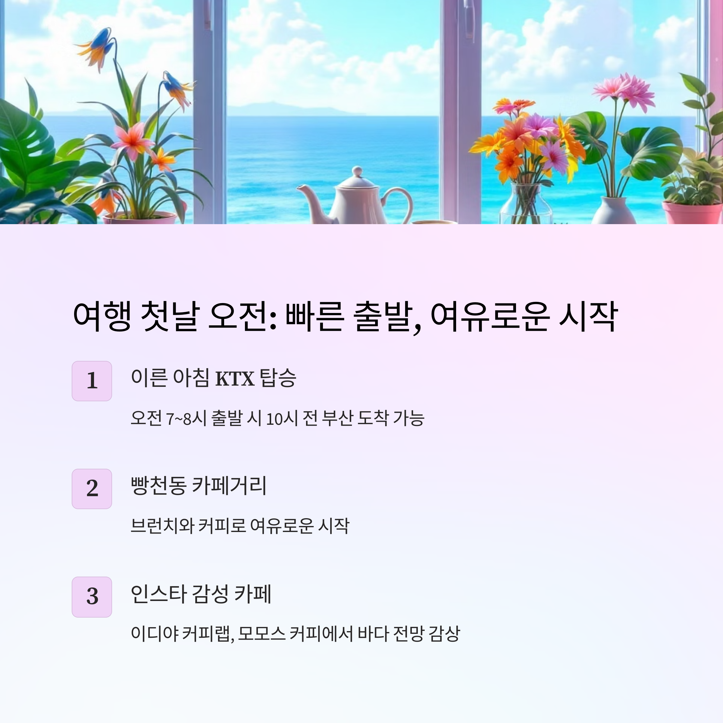 1일차 오전: KTX로 서울역 출발, 부산역 도착 후 카페에서 스타트