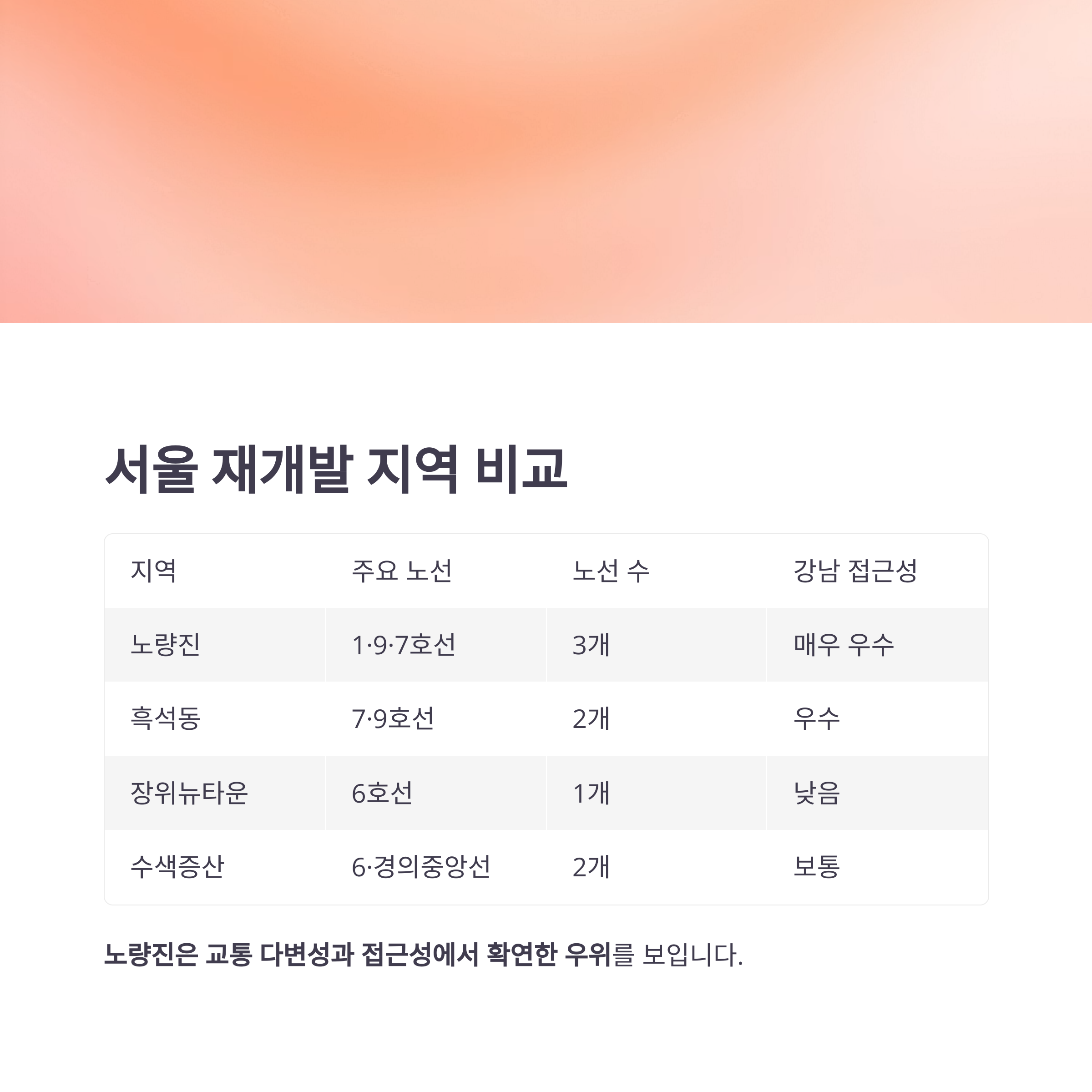 이 글에서는 노량진 교통의 구조적 강점과 입지 프리미엄을 집중 분석합니다.