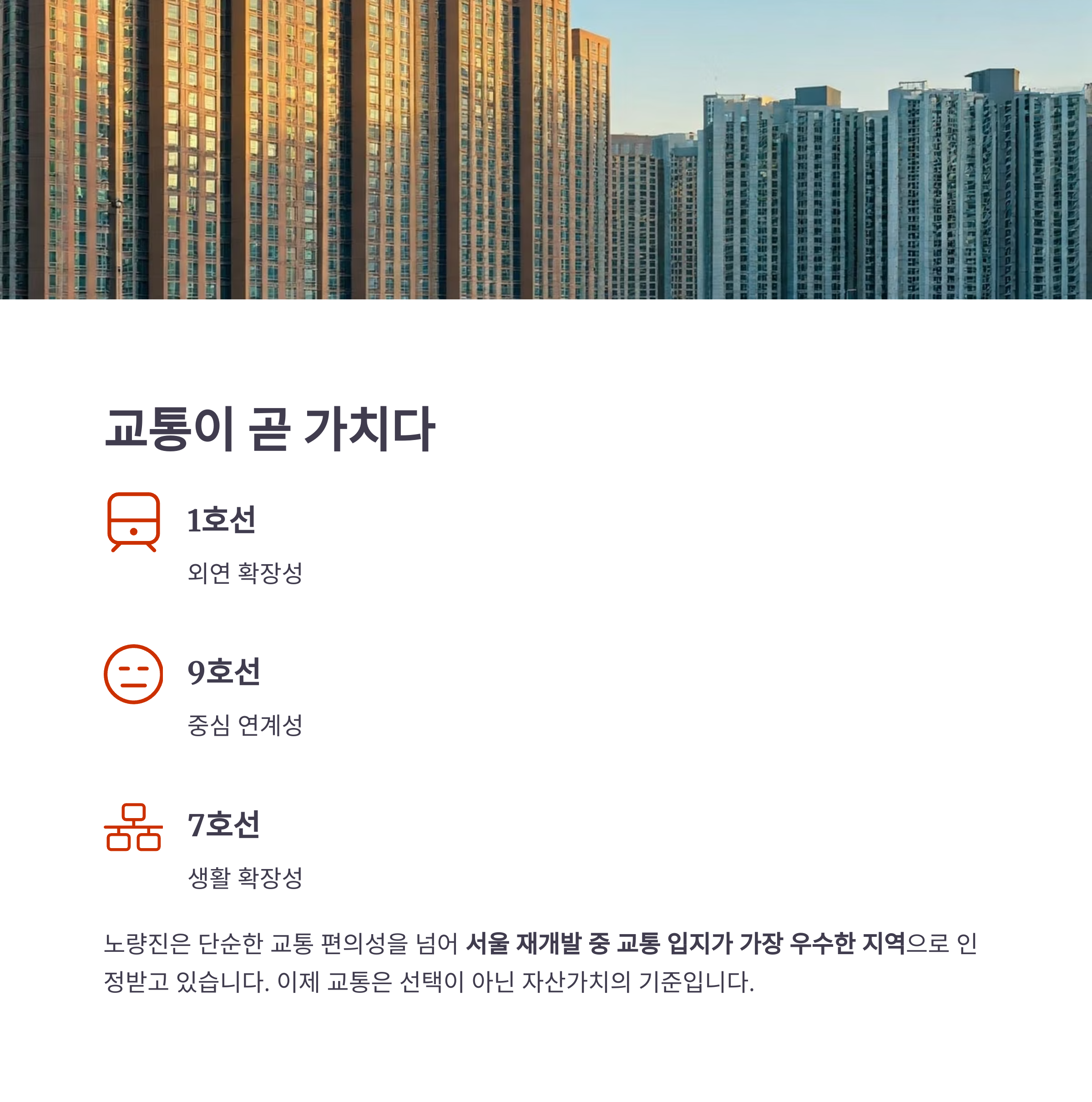 이제 교통은 선택이 아닌 자산가치의 기준입니다.