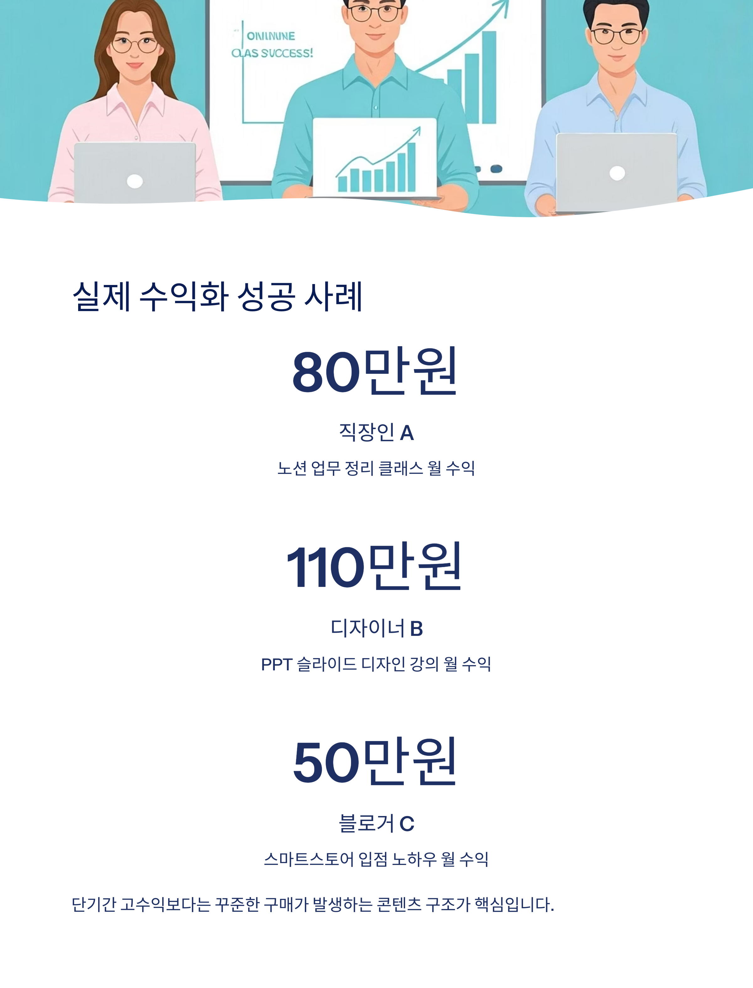 단기간 고수익보다는, 꾸준한 구매가 발생하는 콘텐츠 구조를 만드는 것이 핵심입니다.
