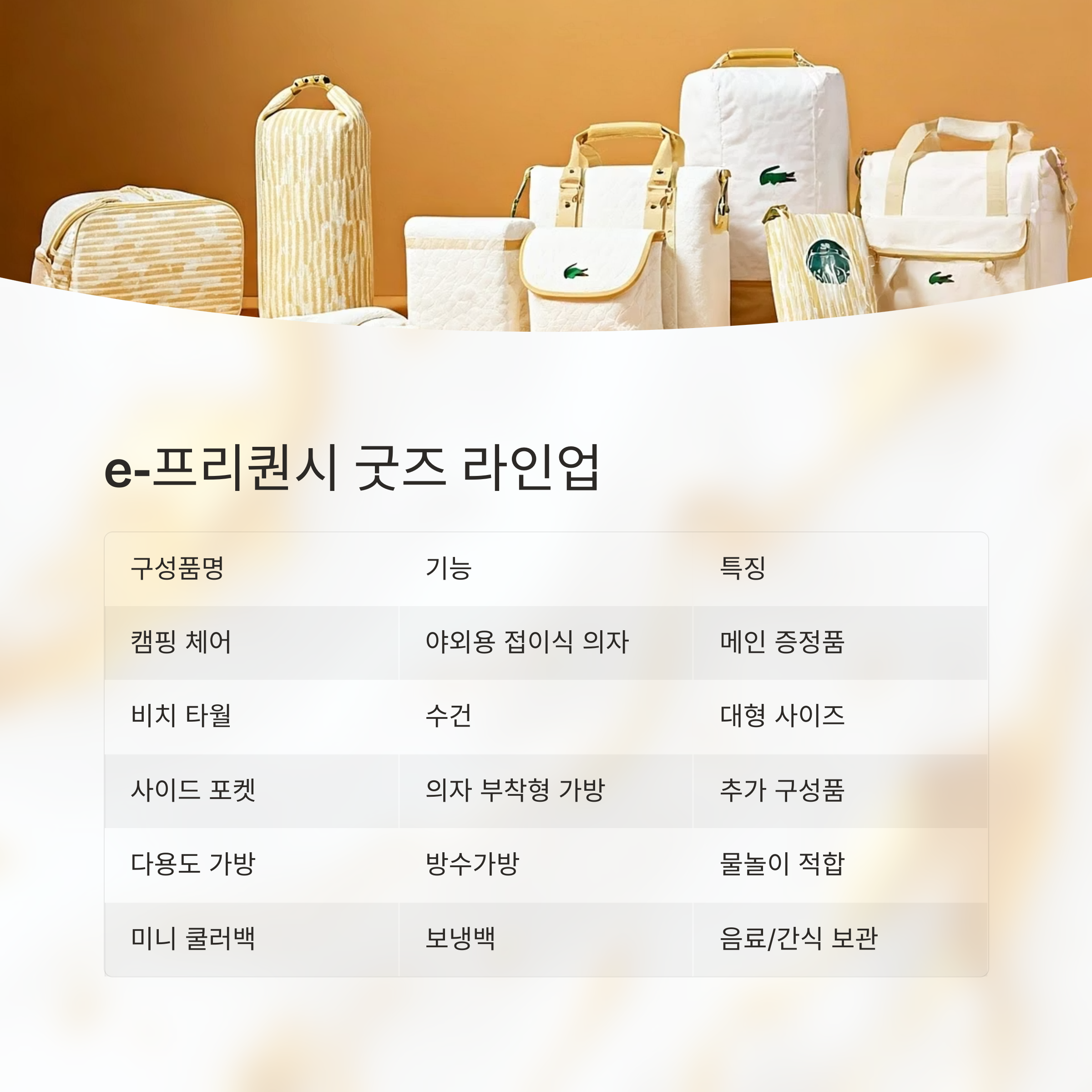 | 미니 쿨러백 | 보냉백 | 음료, 간식 보관용 |