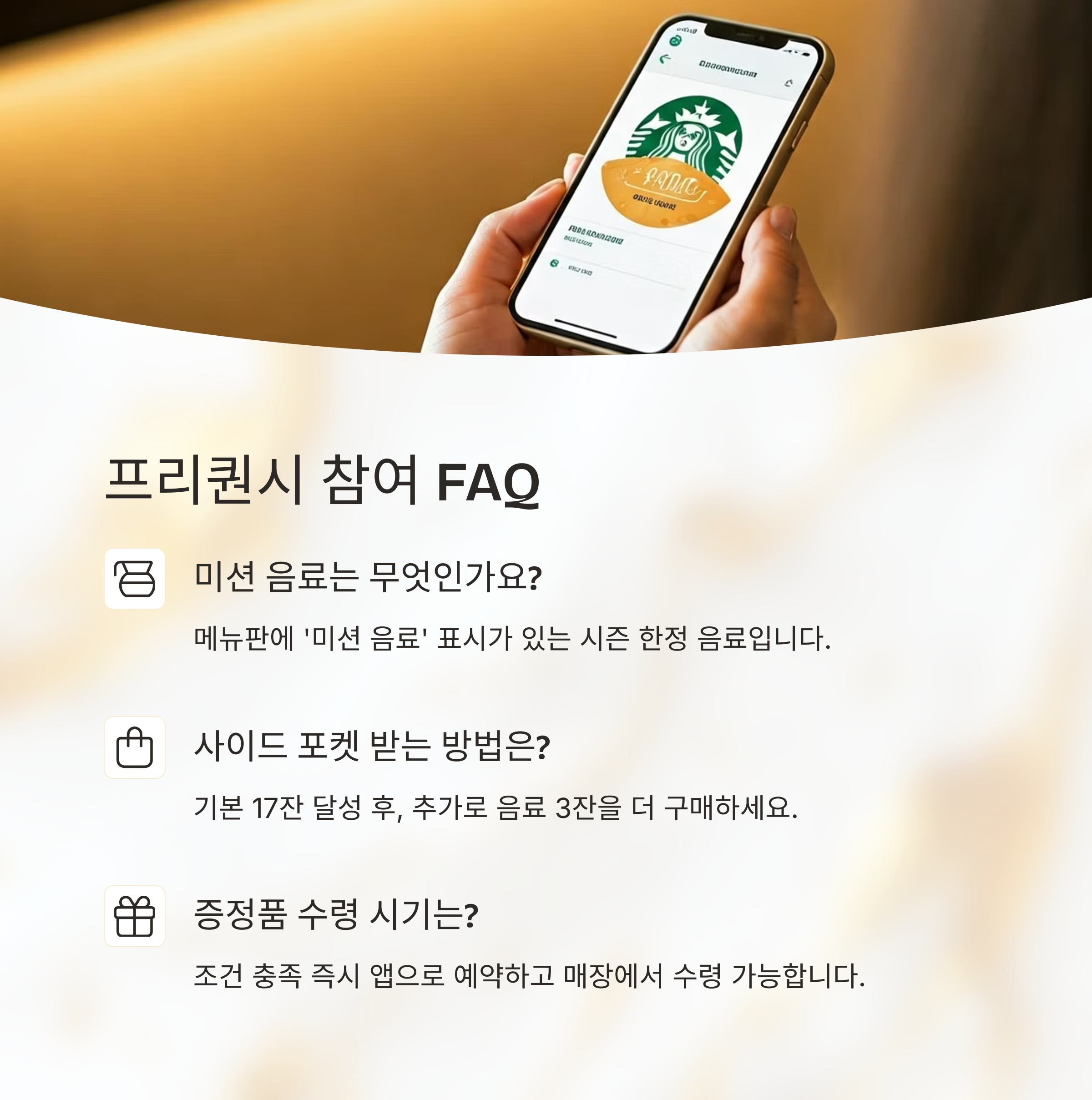 만약 증정품이 조기 품절될 경우에는 무료 톨 사이즈 음료 쿠폰 3매로 대체됩니다.