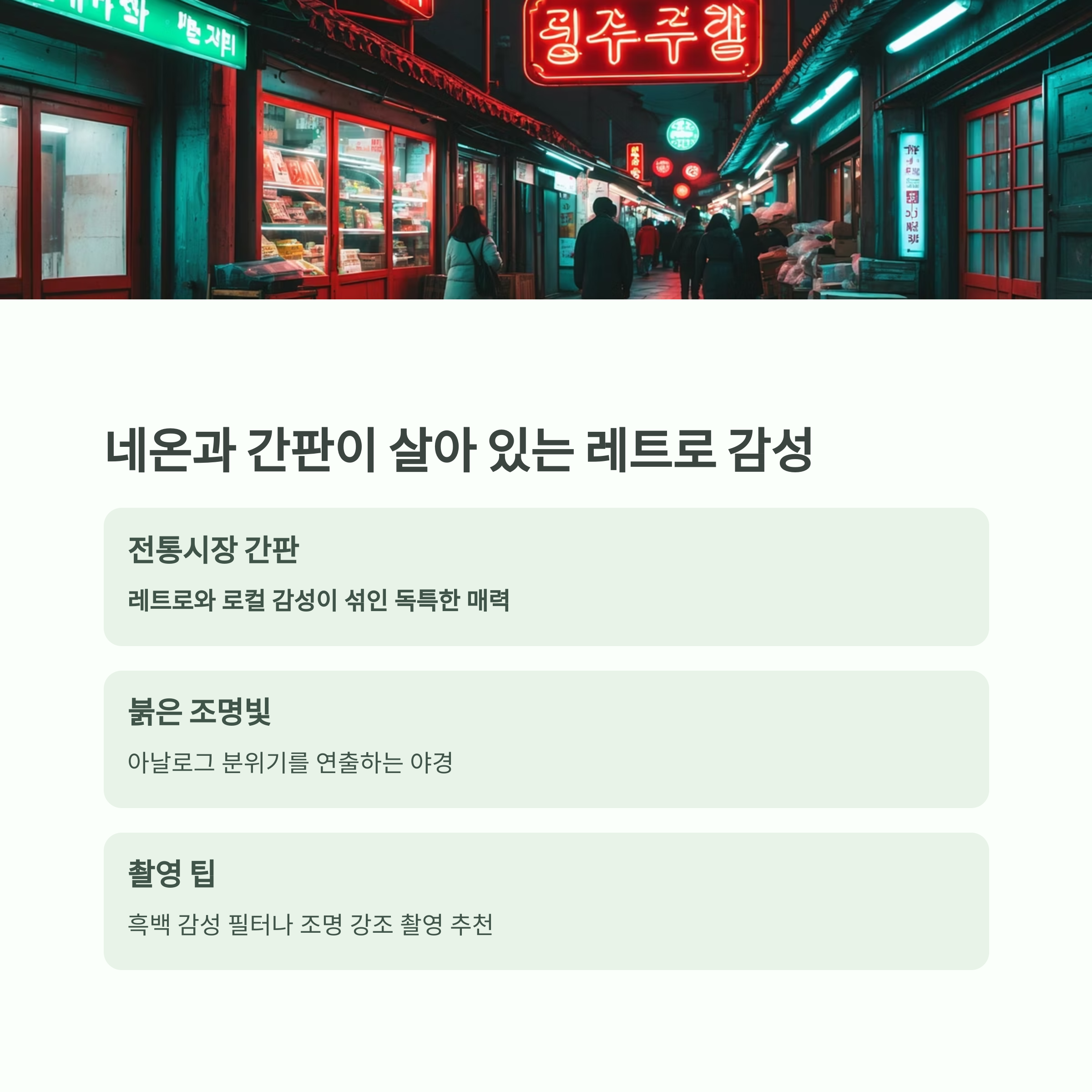 시장 야경, 네온과 간판이 살아 있는 레트로 감성