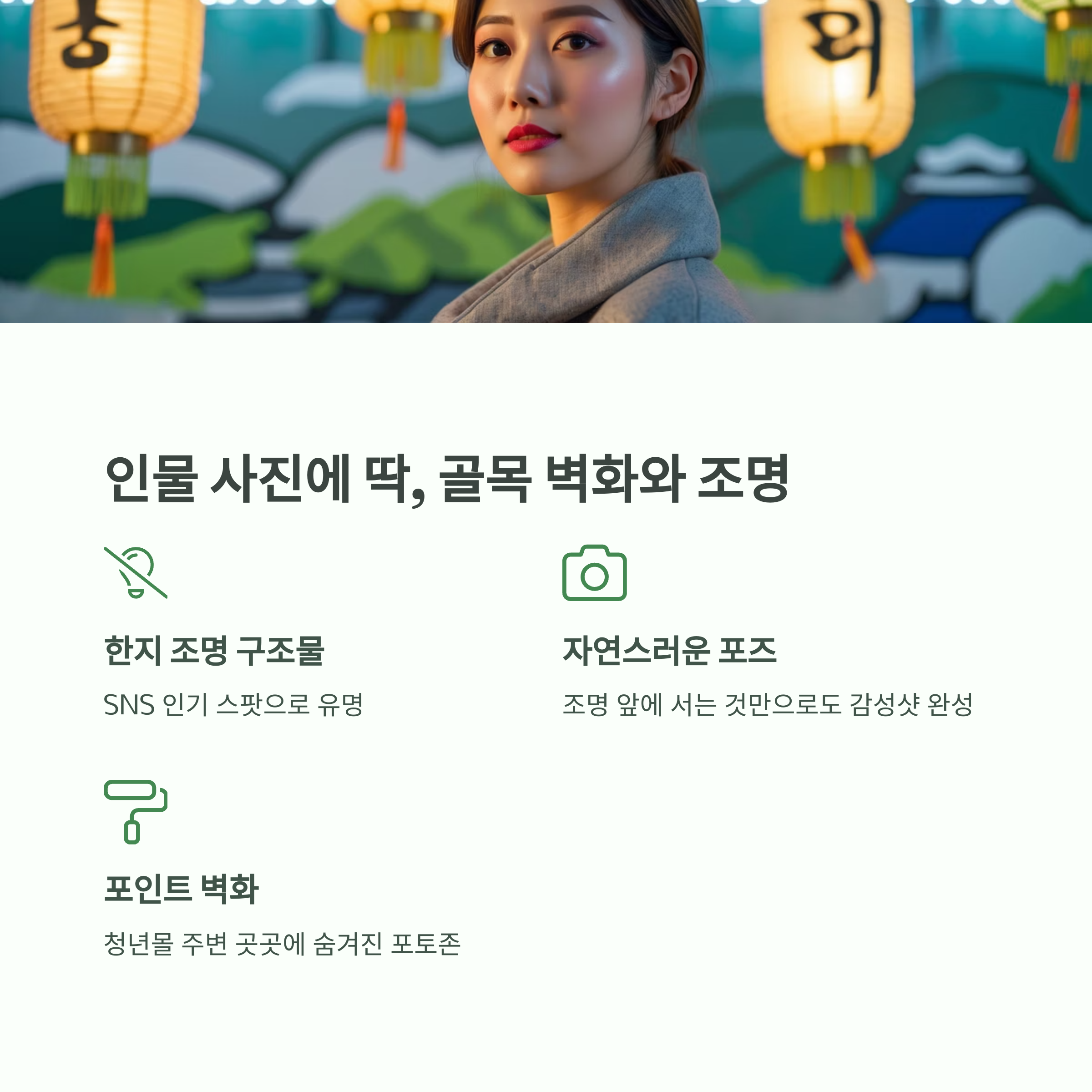 인물 사진에 딱, 골목 벽화와 따뜻한 조명 라인