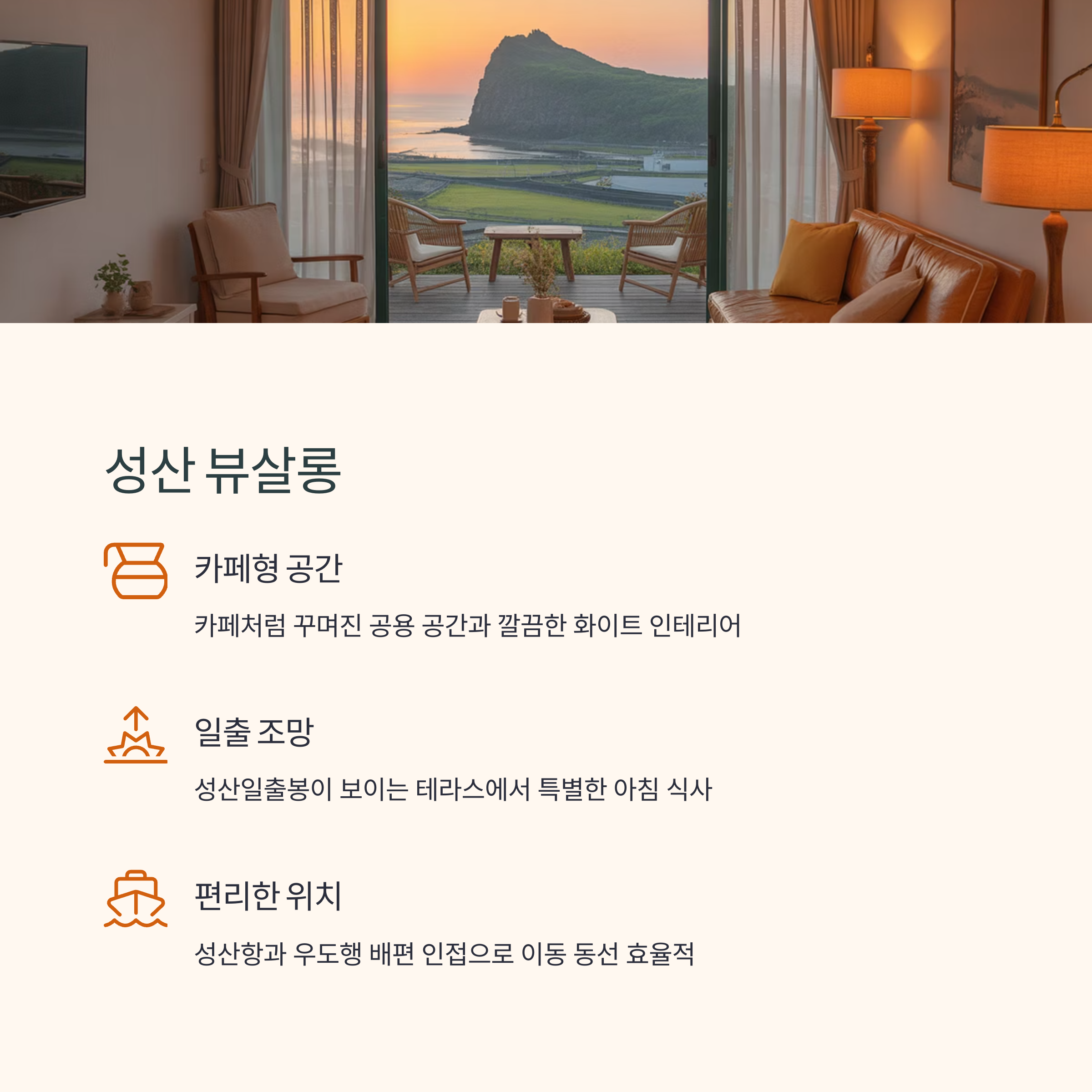 성산일출봉이 가까이 보이는 뷰살롱은 숙소 자체가 하나의 감성 공간입니다.