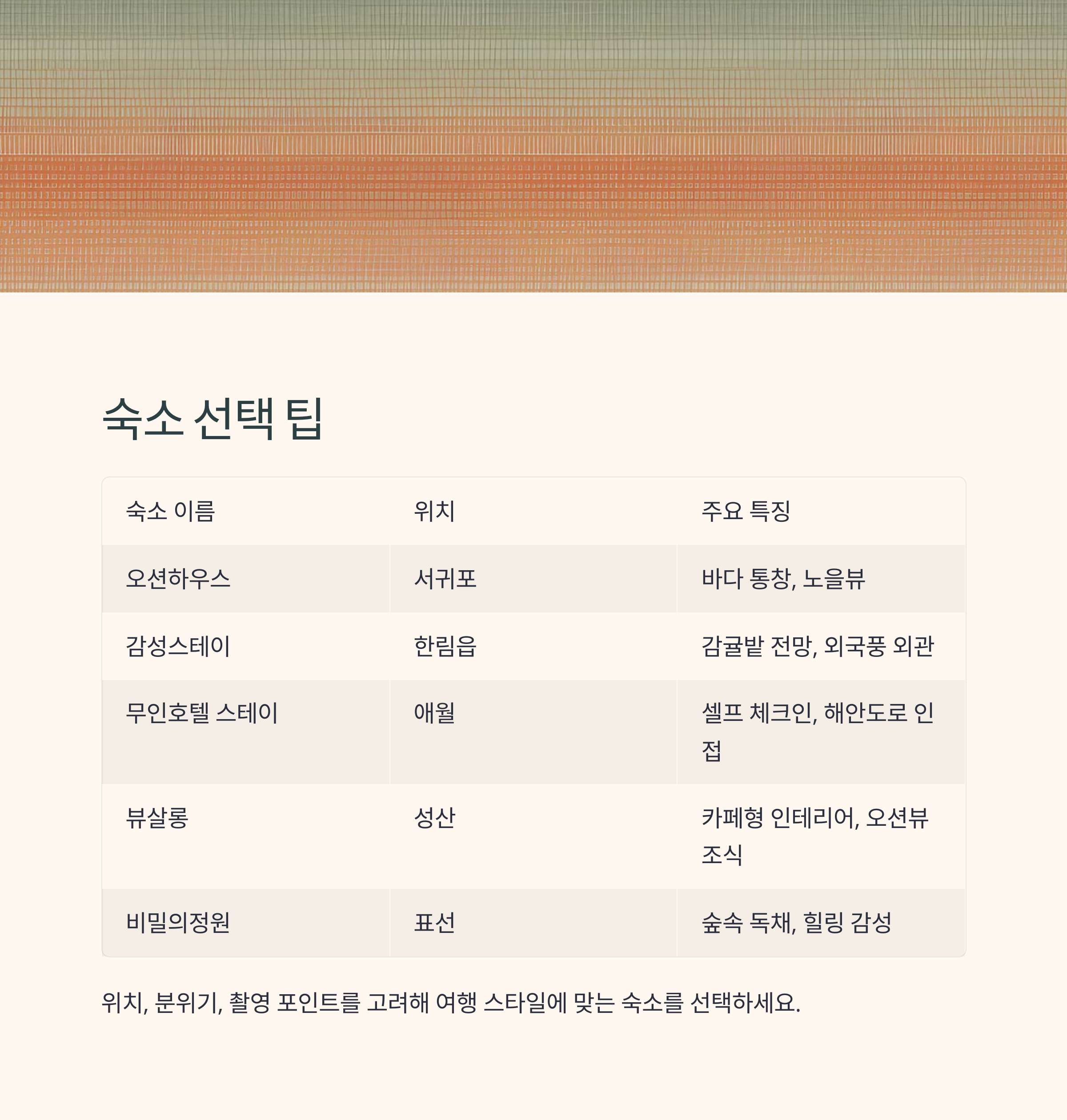 특히 인스타그램 감성을 자극하는 숙소는 사진 한 장만으로도 제주에서의 추억을 오래 간직하게 만듭니다.