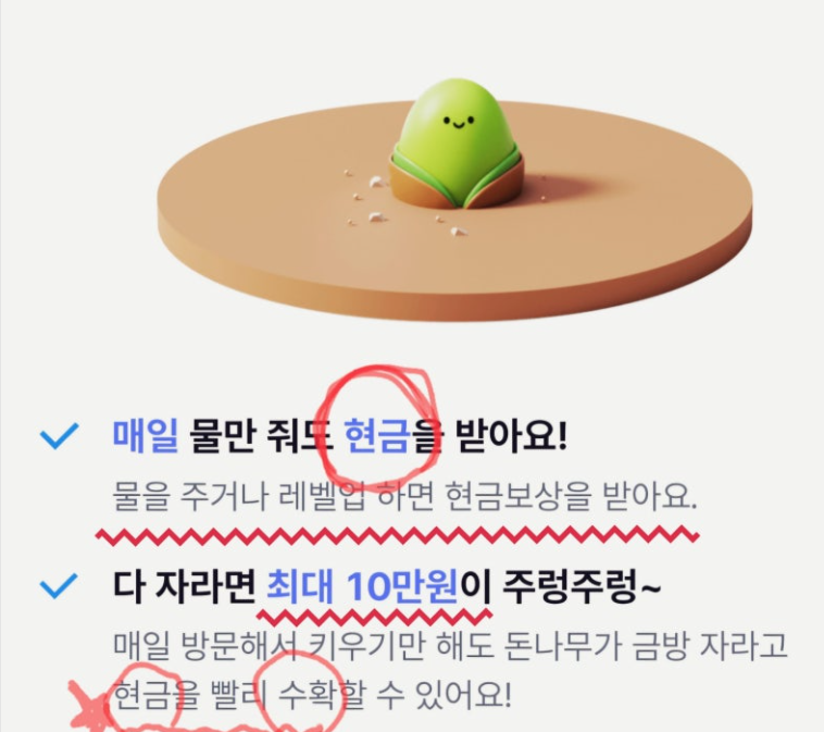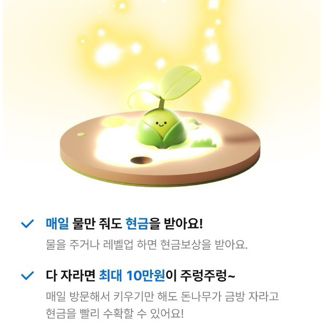 돈나무를 다 키우면 끝이 아니라 다시 처음부터 시작할 수 있습니다. 즉, 한 번만 하고 끝나는 이벤트가 아니라 지속적으로 참여할 수 있는 구조라 소소하게 꾸준히 용돈벌이를 원하는 분들에게 잘 맞습니다.
