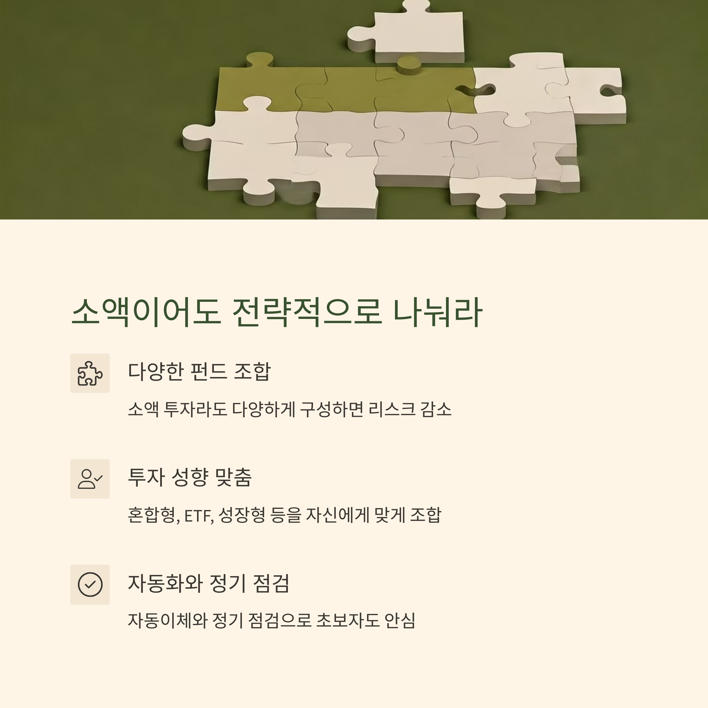 자동이체와 정기 점검만 잘 해도 초보자도 안심할 수 있는 분산 투자가 가능합니다.