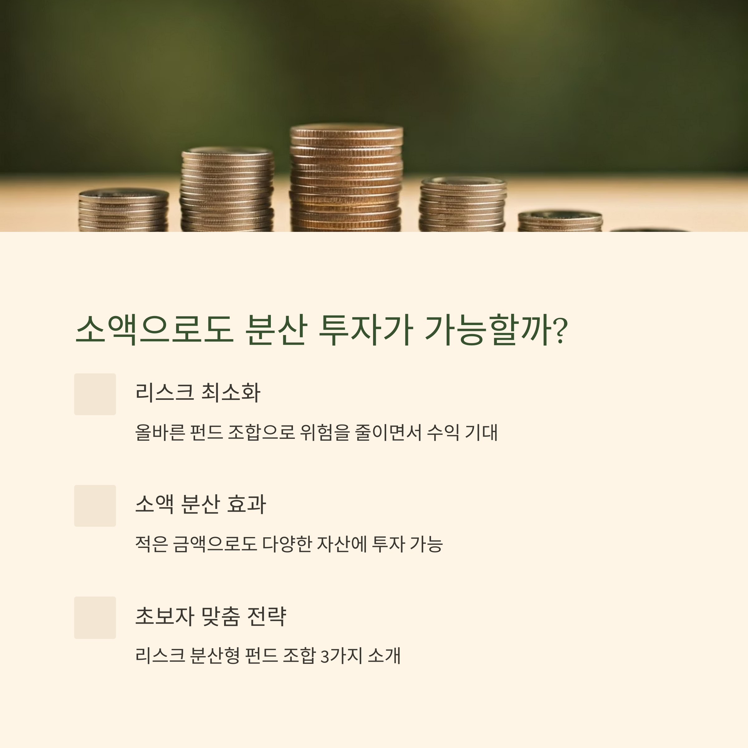 소액 투자라도 펀드 조합을 다양하게 구성하면 리스크를 크게 줄일 수 있습니다.