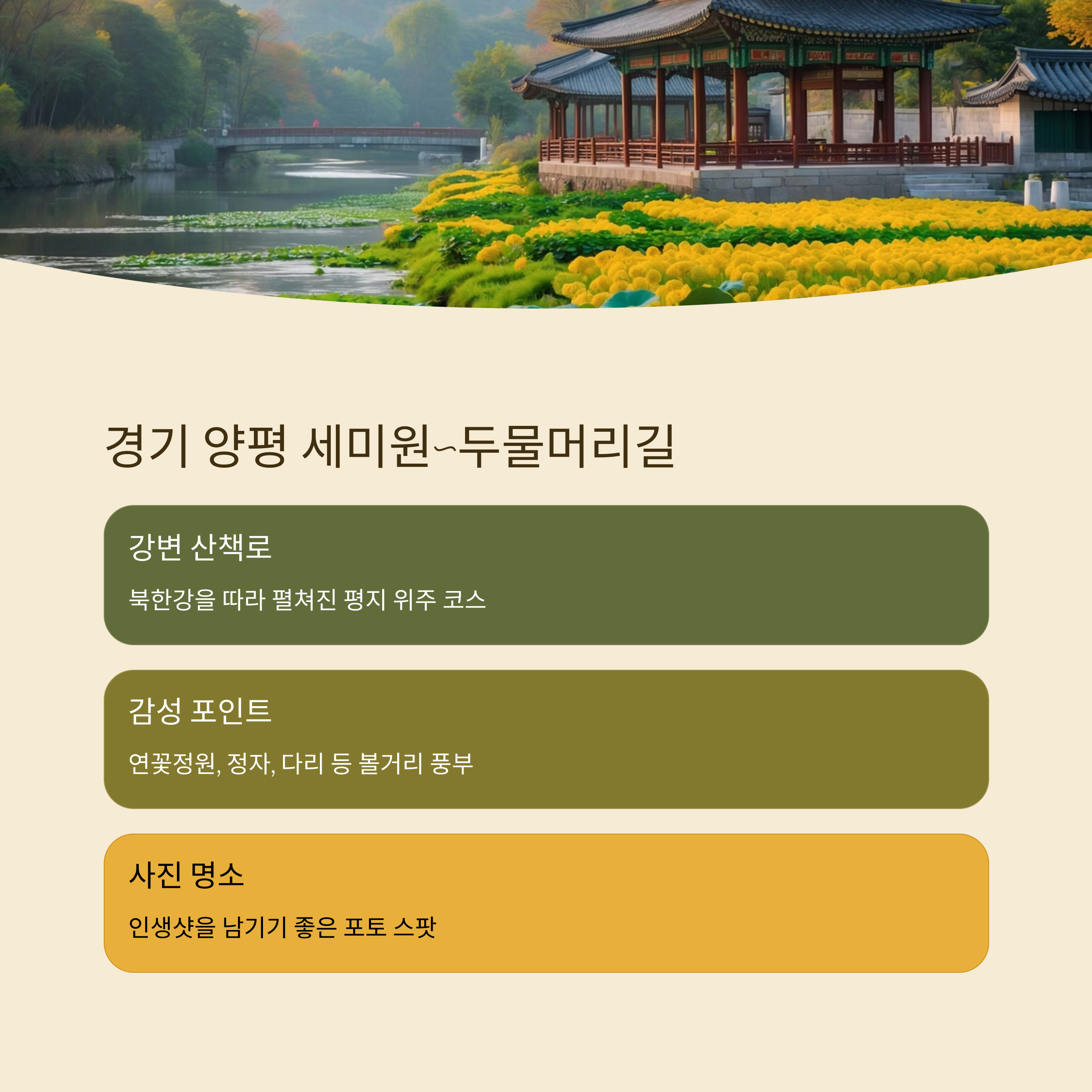 9. 경기 양평 세미원~두물머리길 – 강과 꽃이 어우러진 걷기 좋은 길