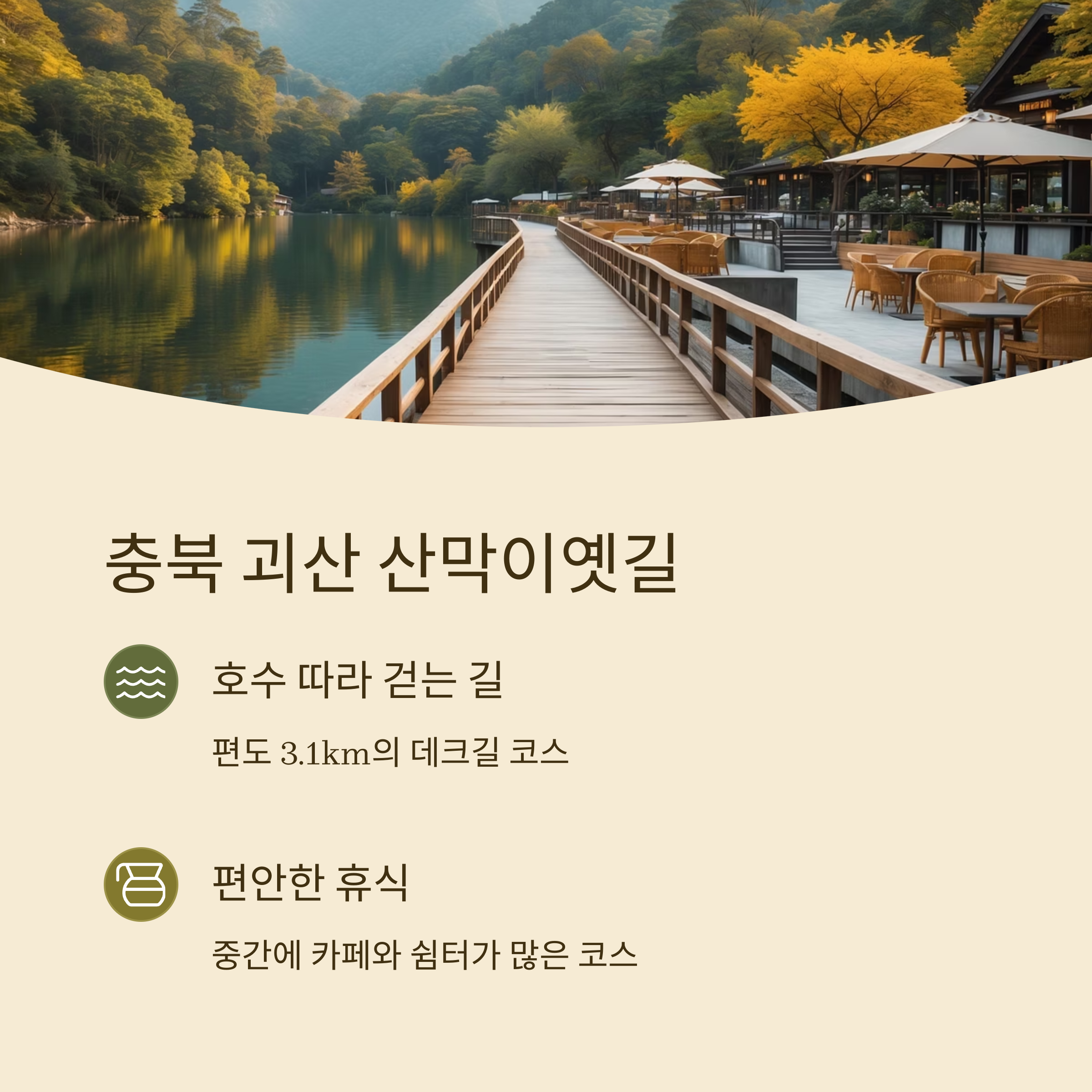 6. 충북 괴산 산막이옛길 – 호수 따라 걷는 나무길