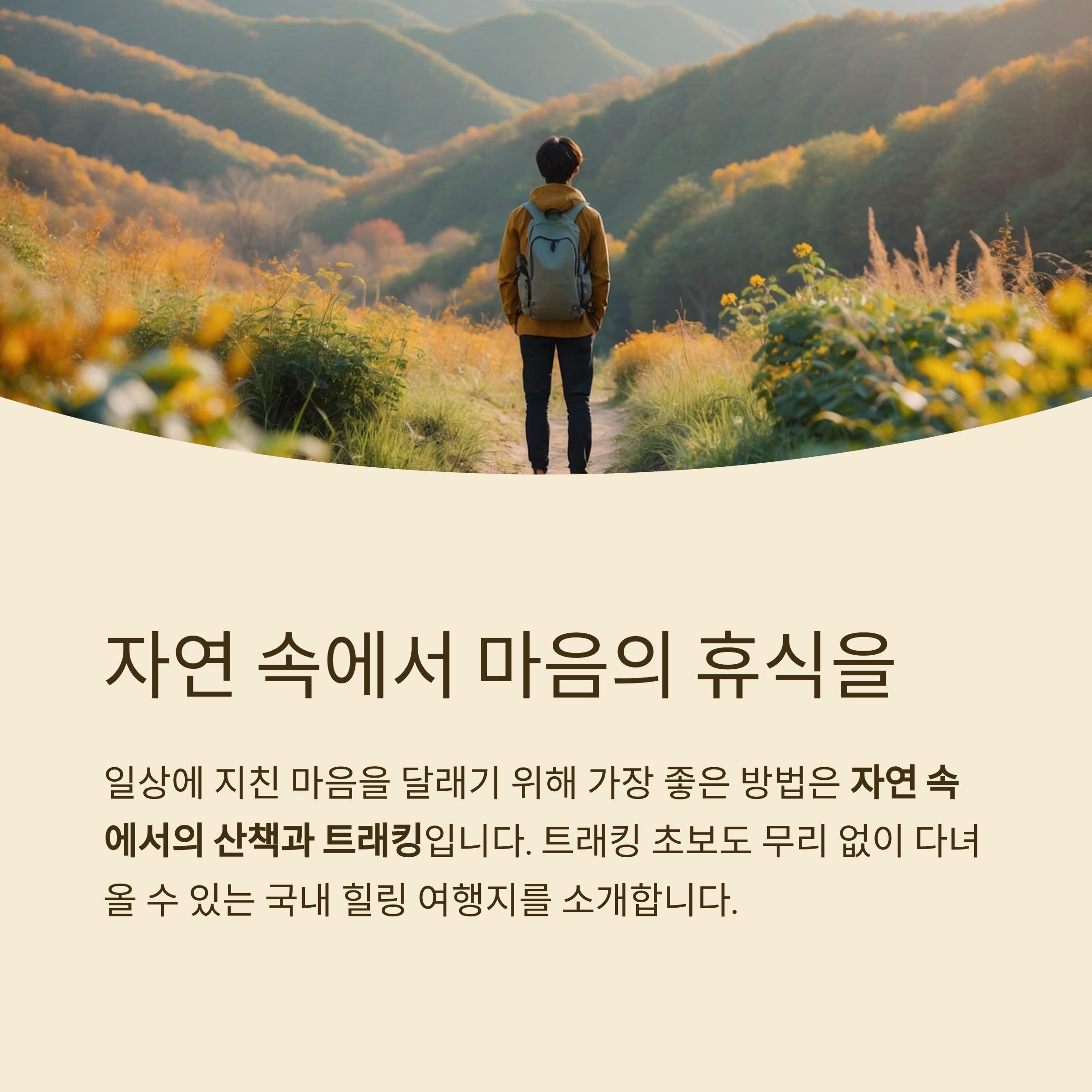 일상에 지친 마음을 달래기 위해 가장 좋은 방법은 자연 속에서의 산책과 트래킹입니다.