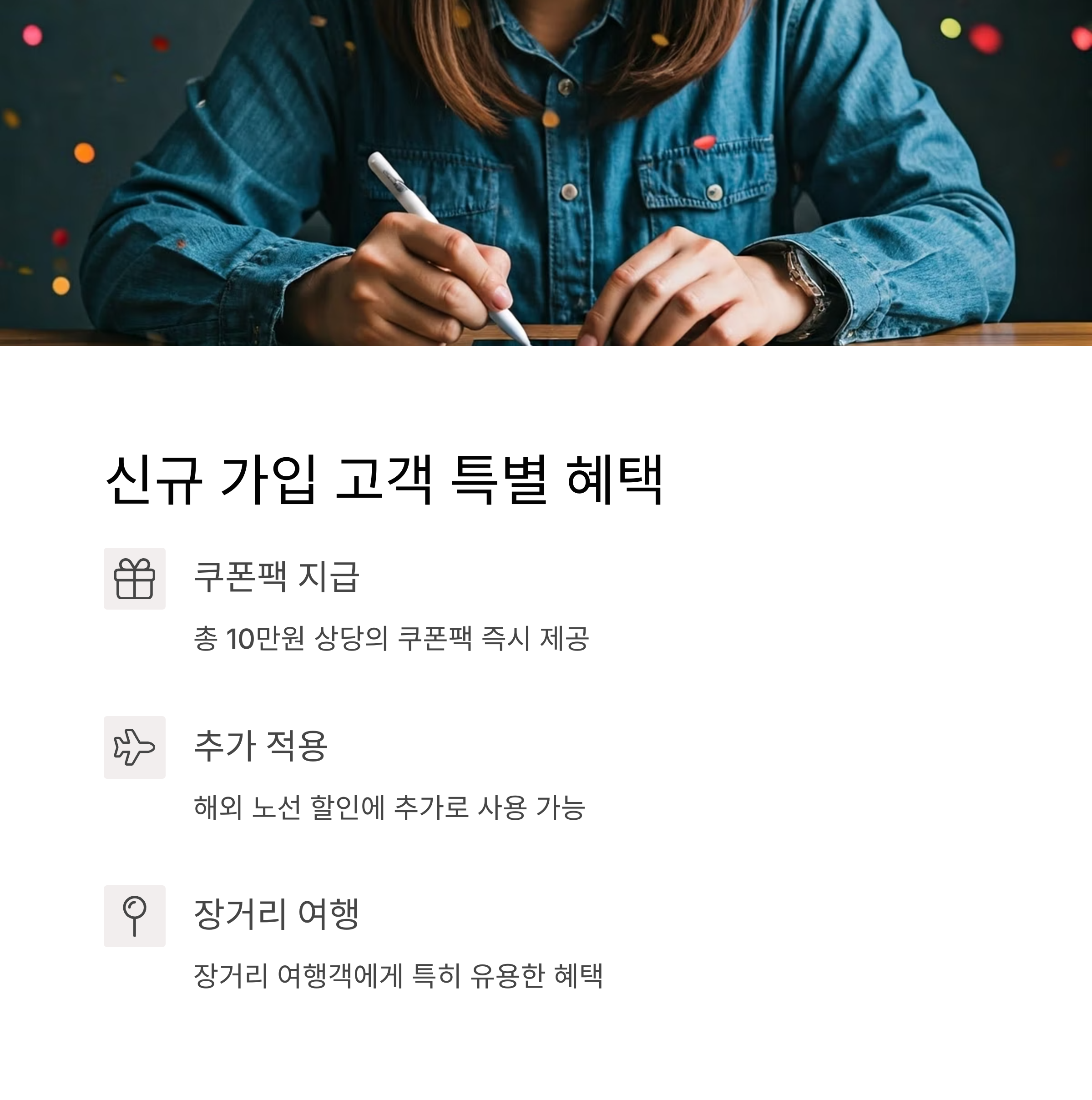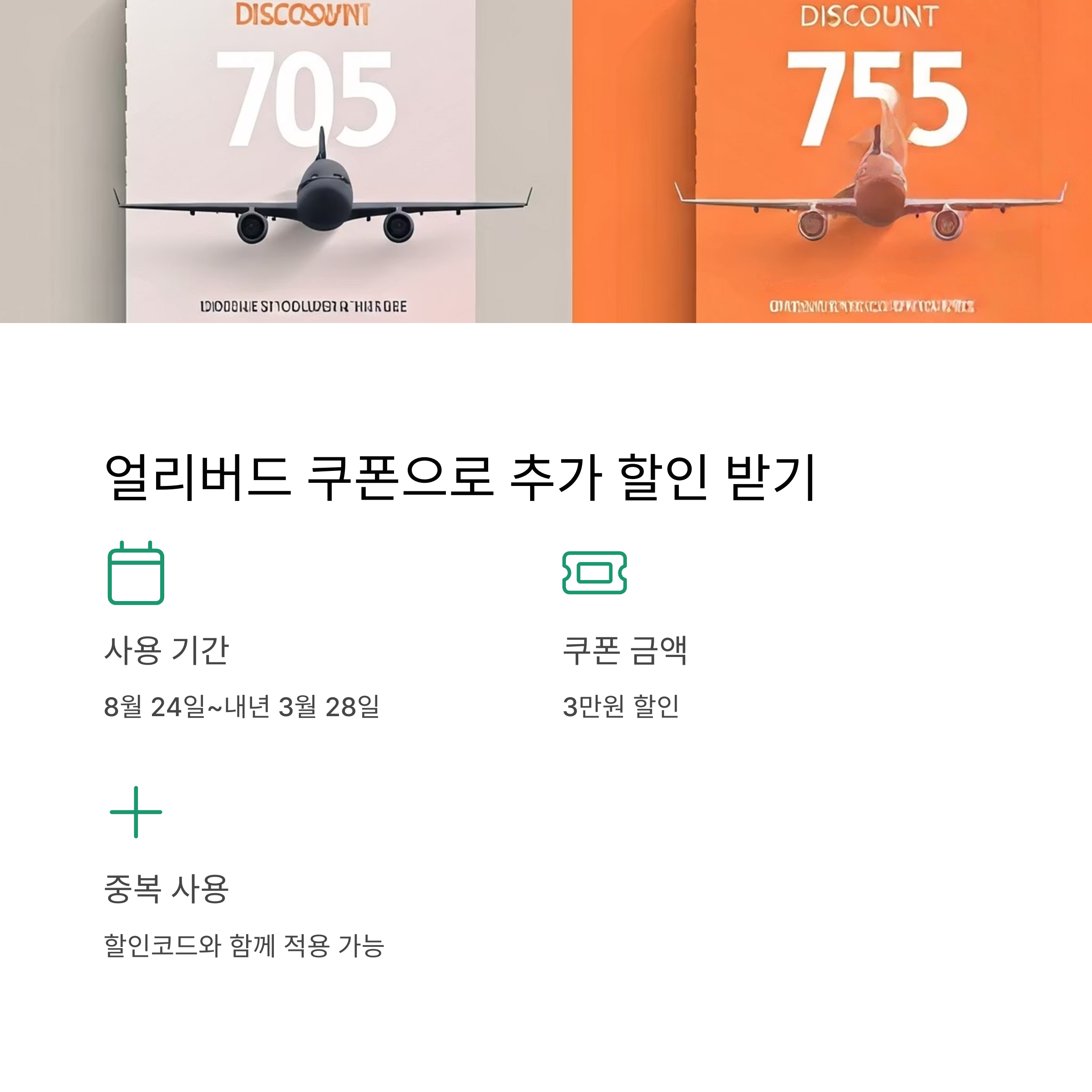| 항공권 할인 | 모든 노선 적용 가능 |