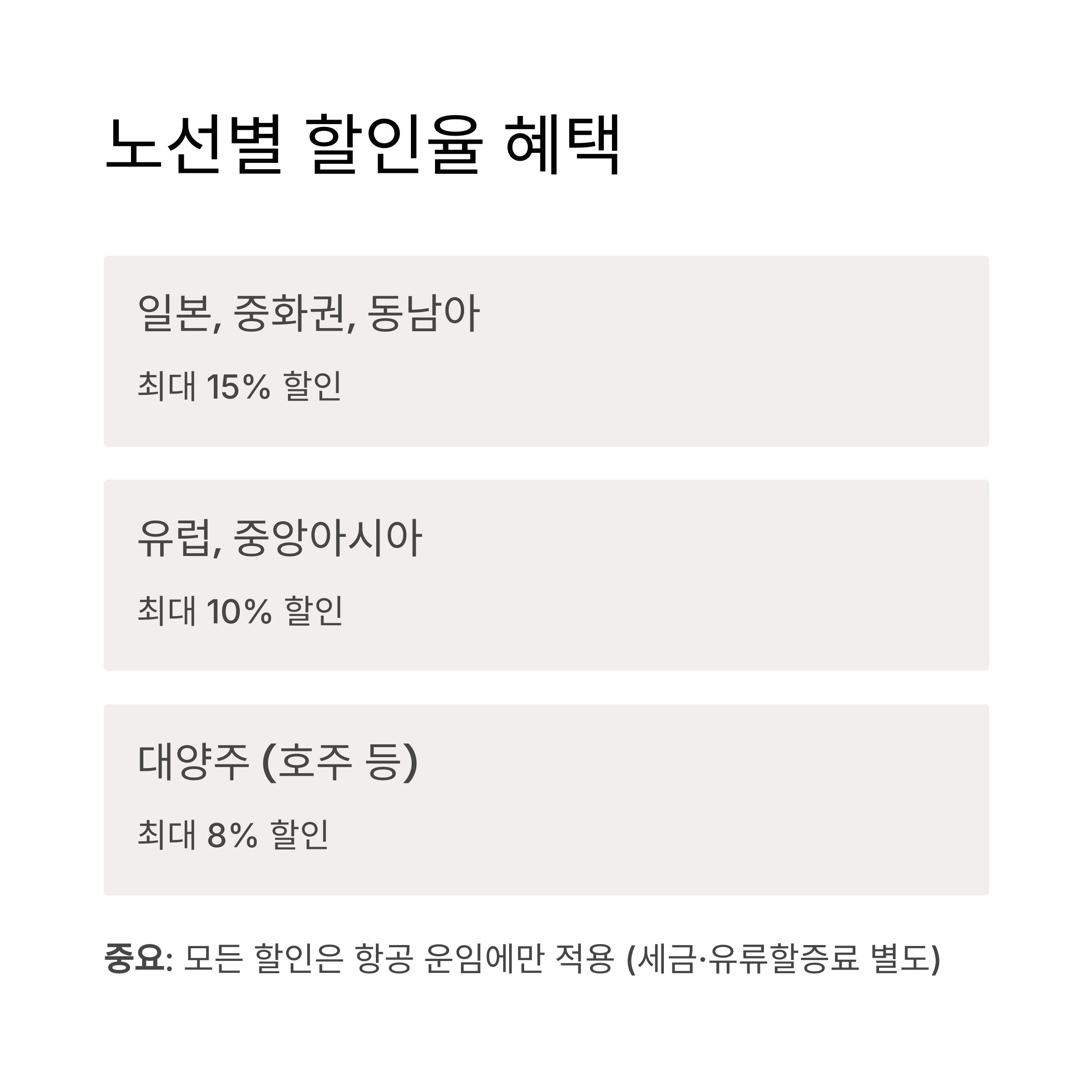 할인율 상세 안내 – 노선별로 다른 혜택 구성