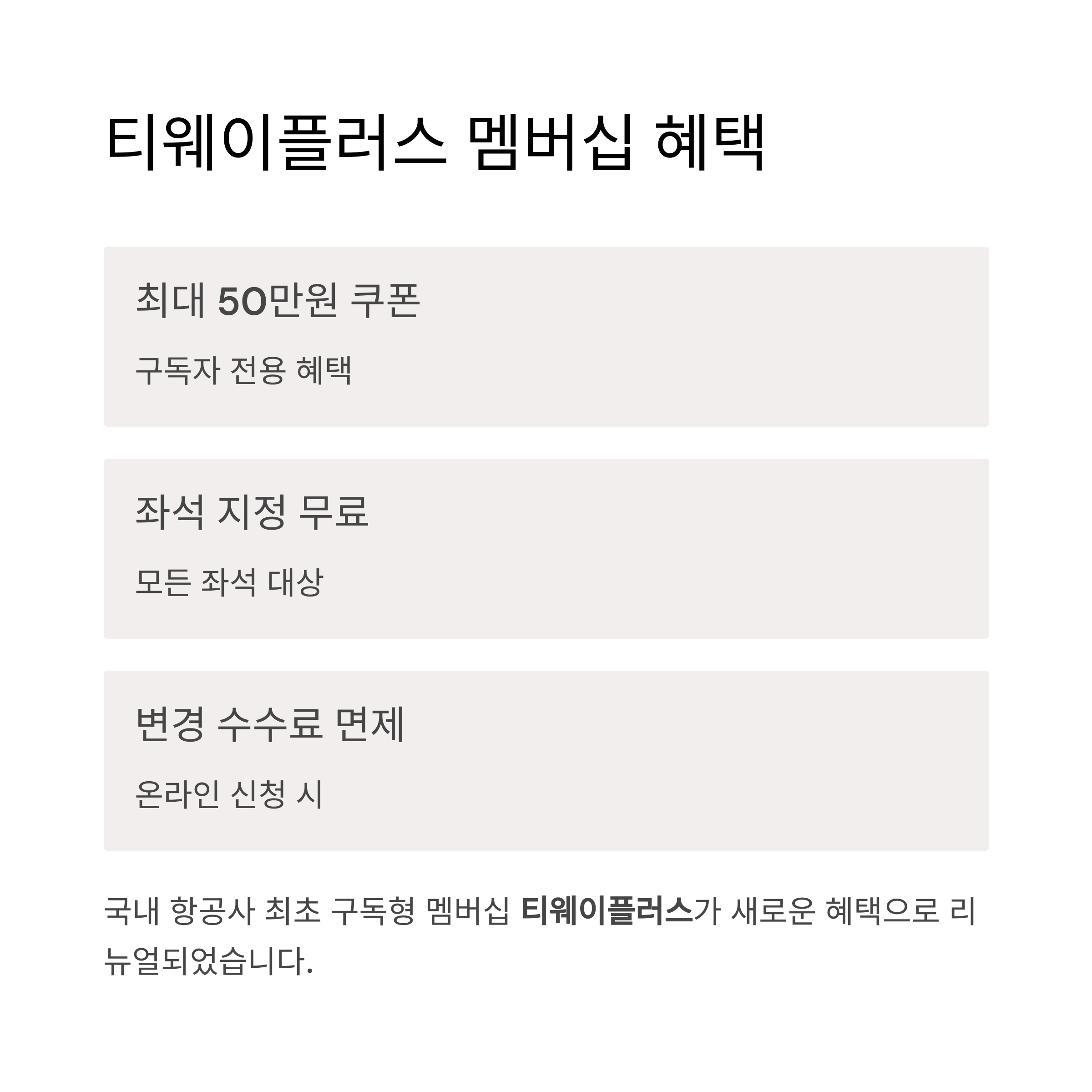티웨이플러스 구독 멤버십 리뉴얼 소식