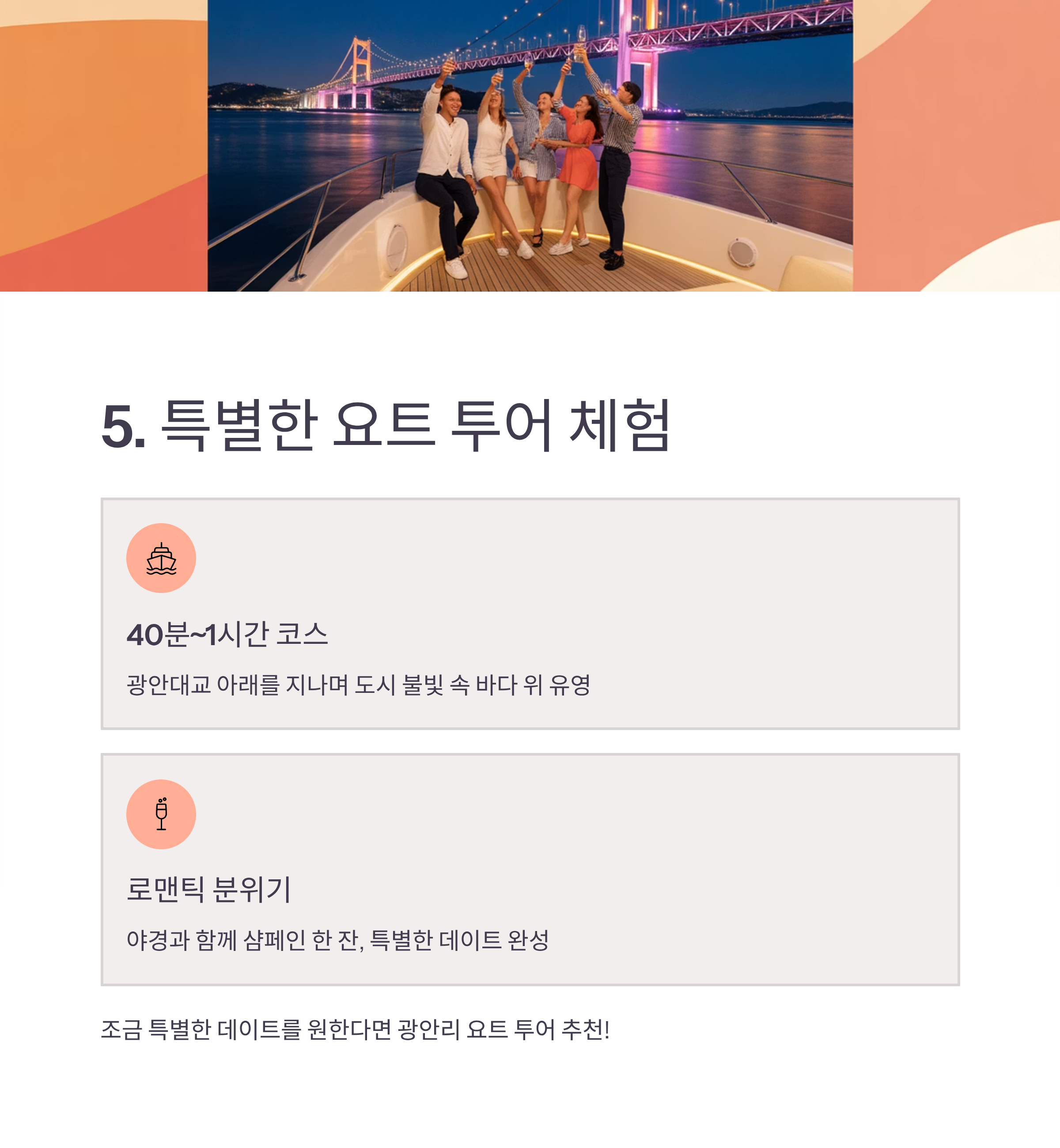 조금 특별한 데이트를 원한다면 광안리 요트 투어를 추천해요.