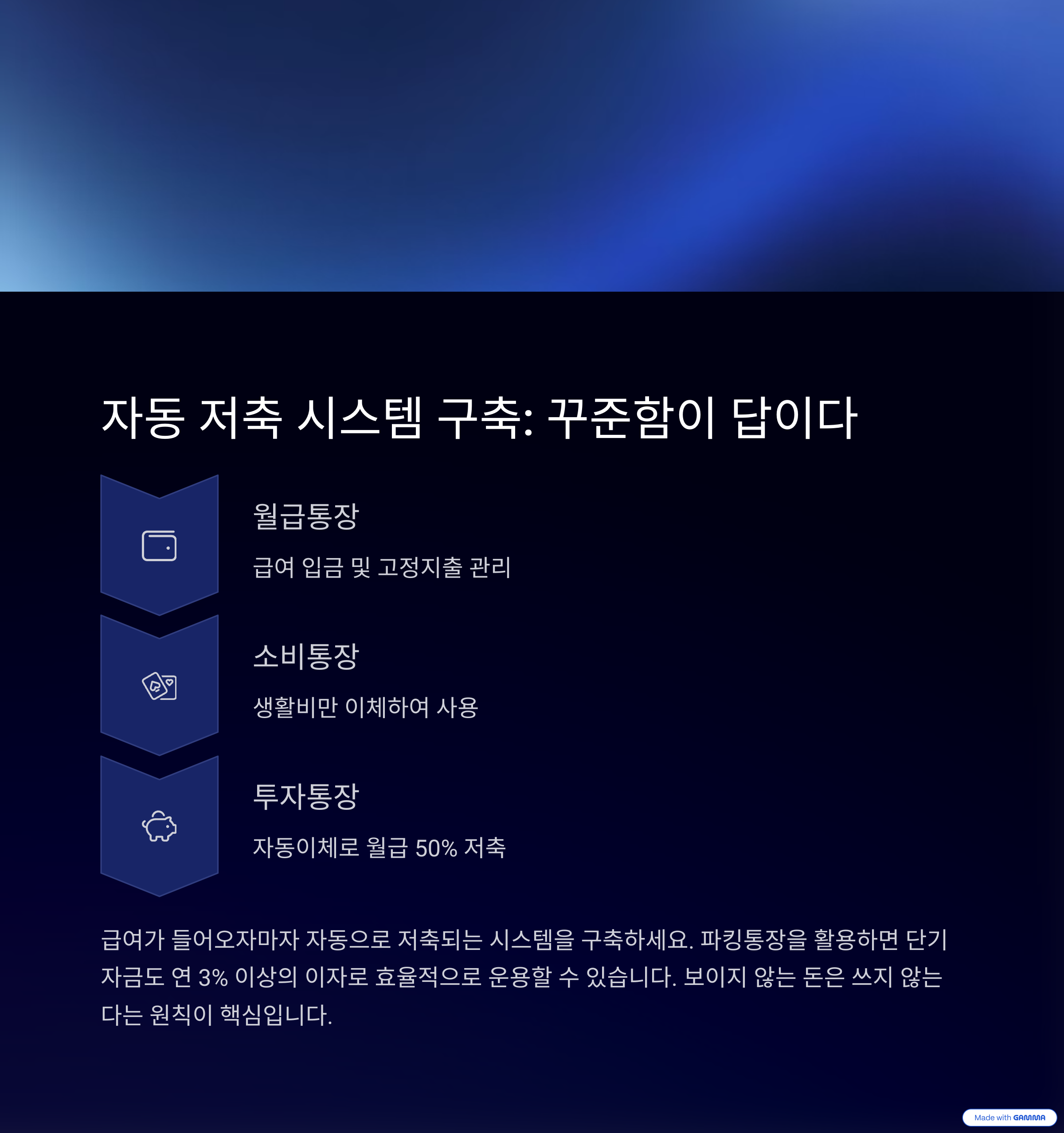 저축 후 남은 돈으로 생활하는 습관이 중요합니다.