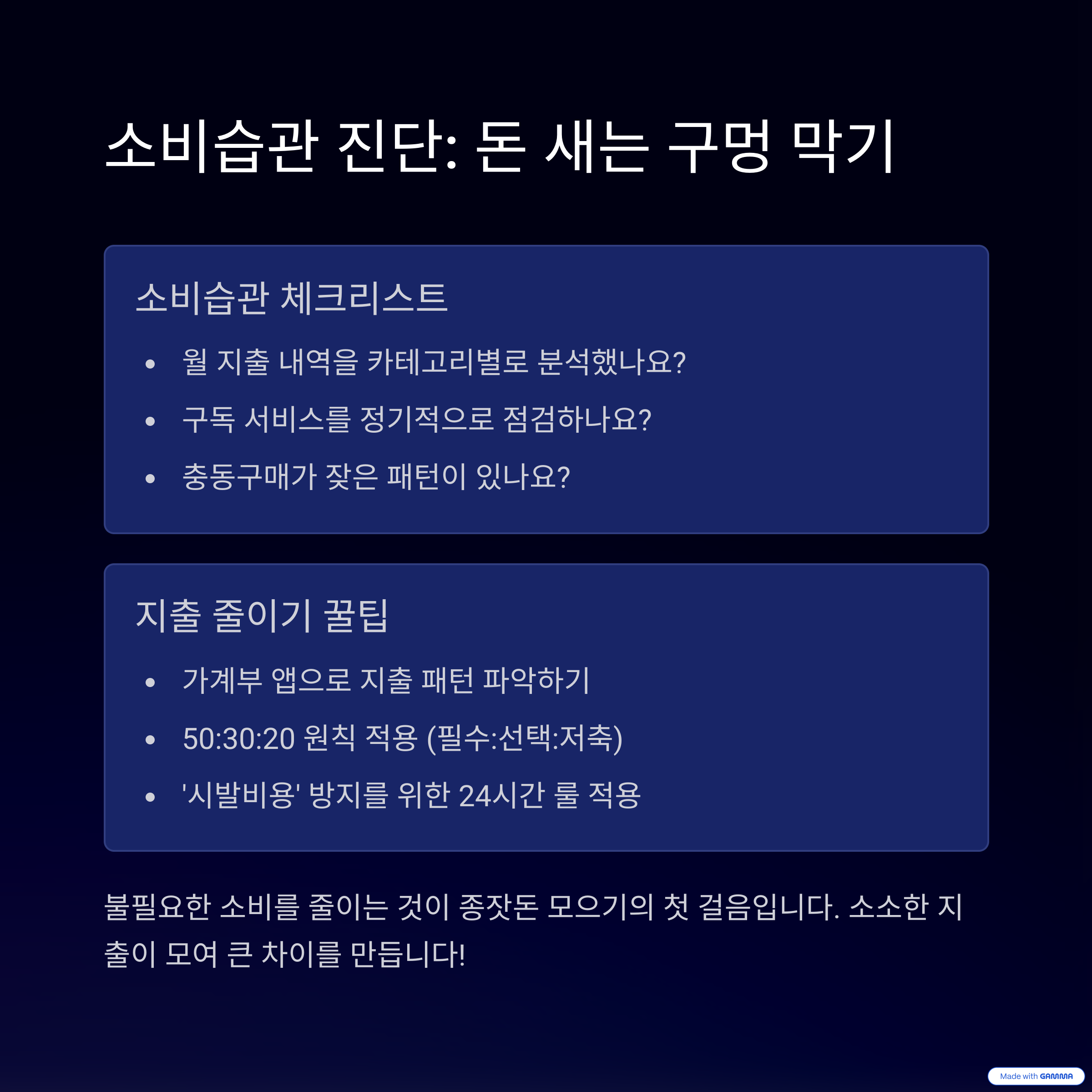 "나도 모르게 새어나가는 돈"을 체크해보세요.