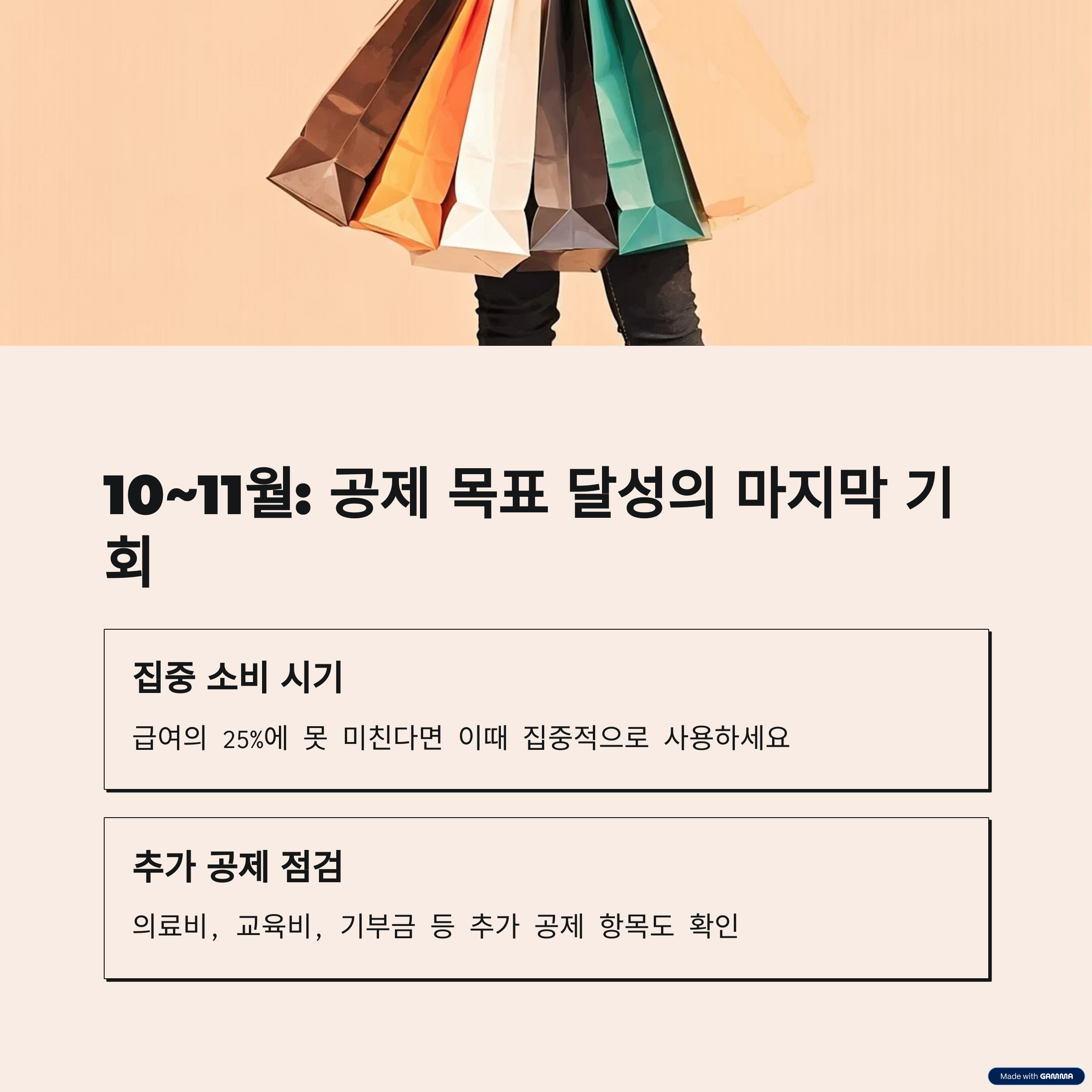 | 10~11월 | 공제액 채우기 위한 소비 | 의료비, 교육비도 체크 |