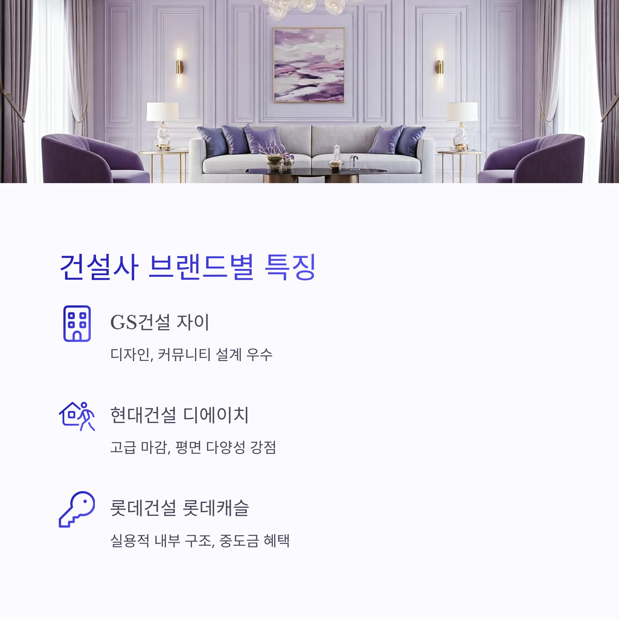 | 현대건설 | 디에이치 | 고급 마감, 평면 다양성 강점 |