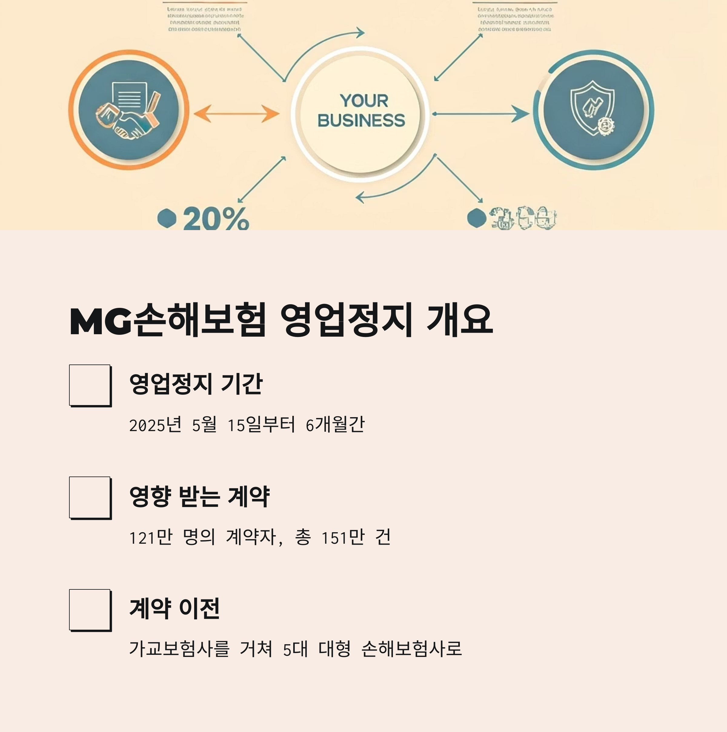 MG손해보험이 2025년 5월 15일부터 6개월간 영업정지에 들어가면서, 보험 계약자 121만 명의 계약 151만 건은