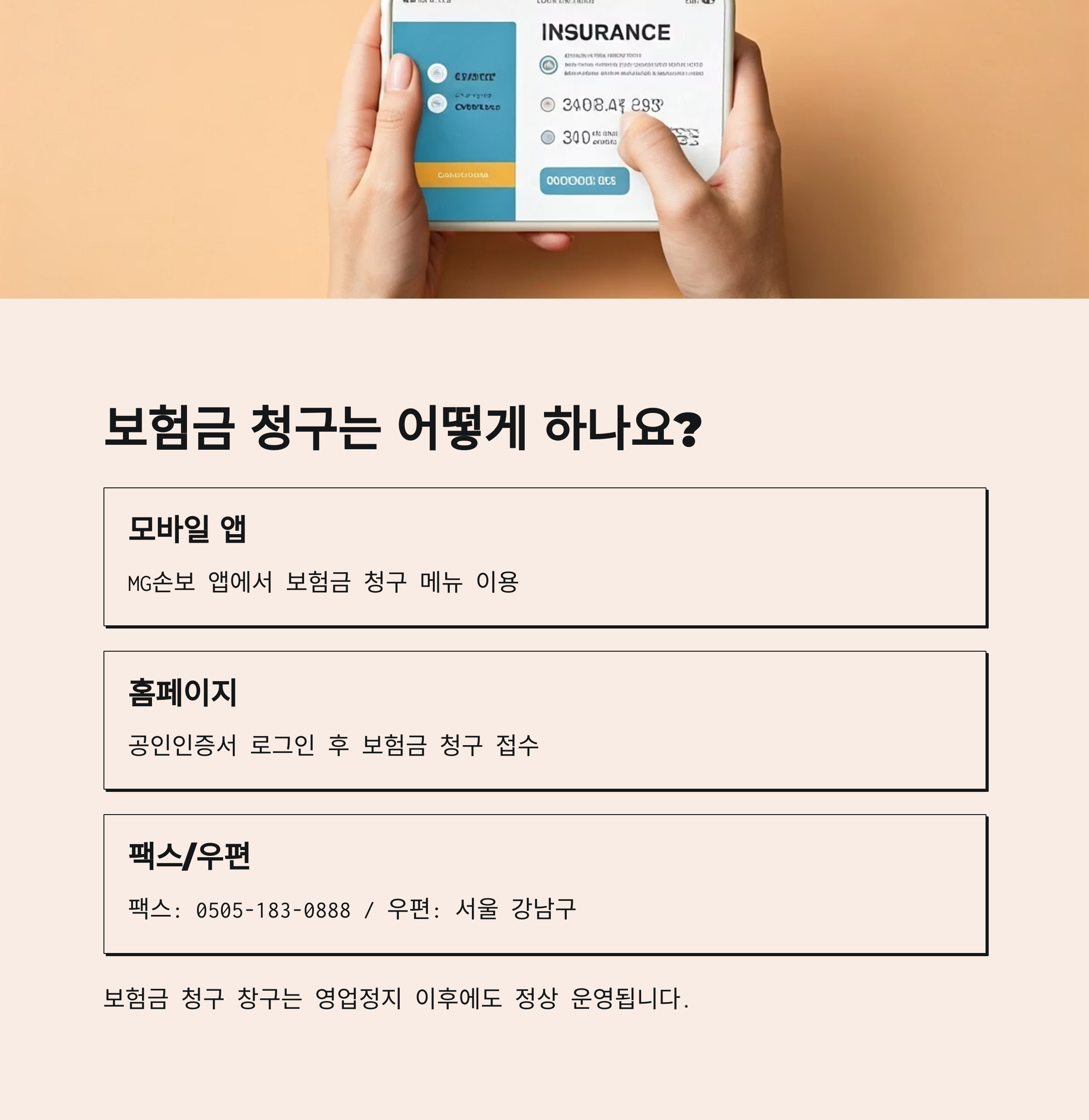 영업정지 이후에도 MG손보의 보험금 청구 창구는 정상 운영됩니다.
