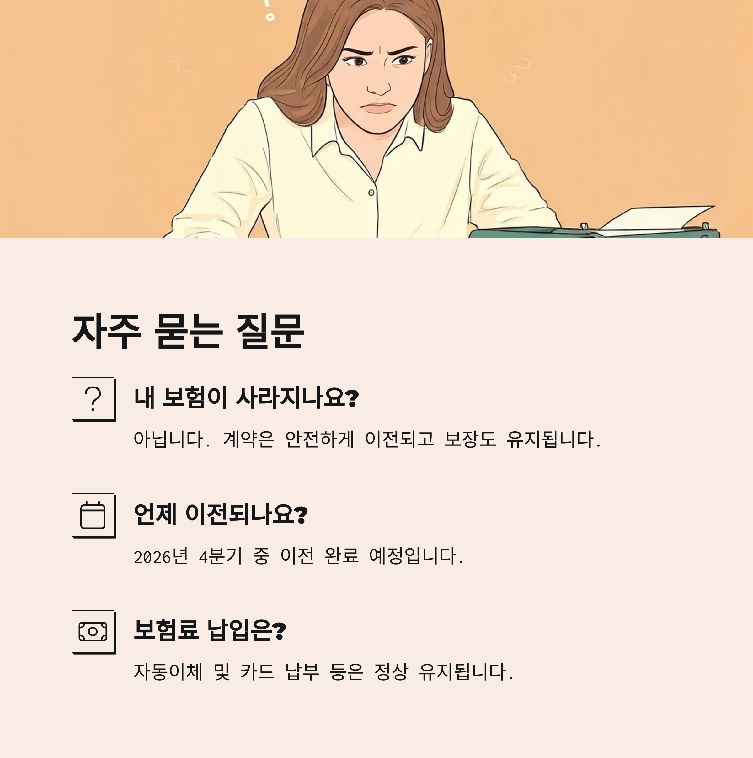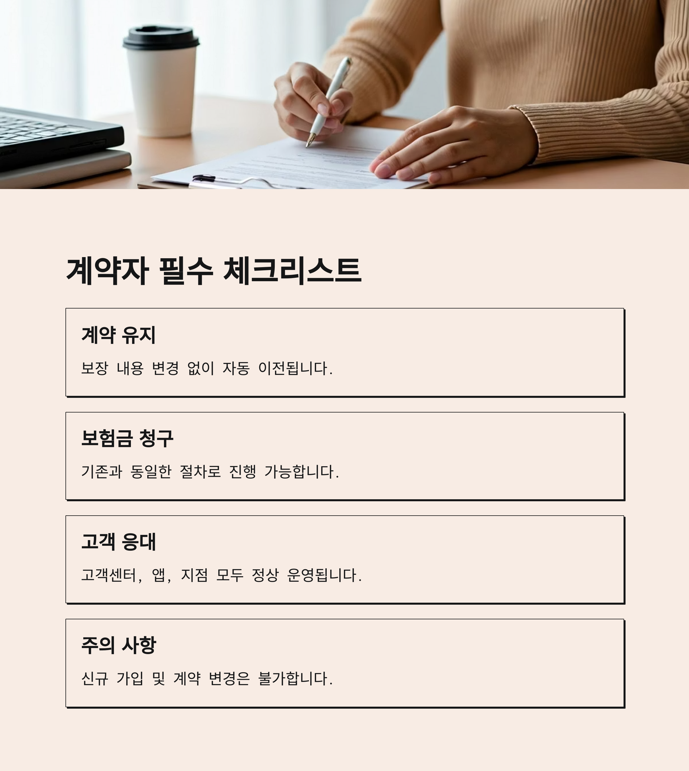 → 아닙니다. 계약은 안전하게 이전되고, 보장도 그대로 유지됩니다.