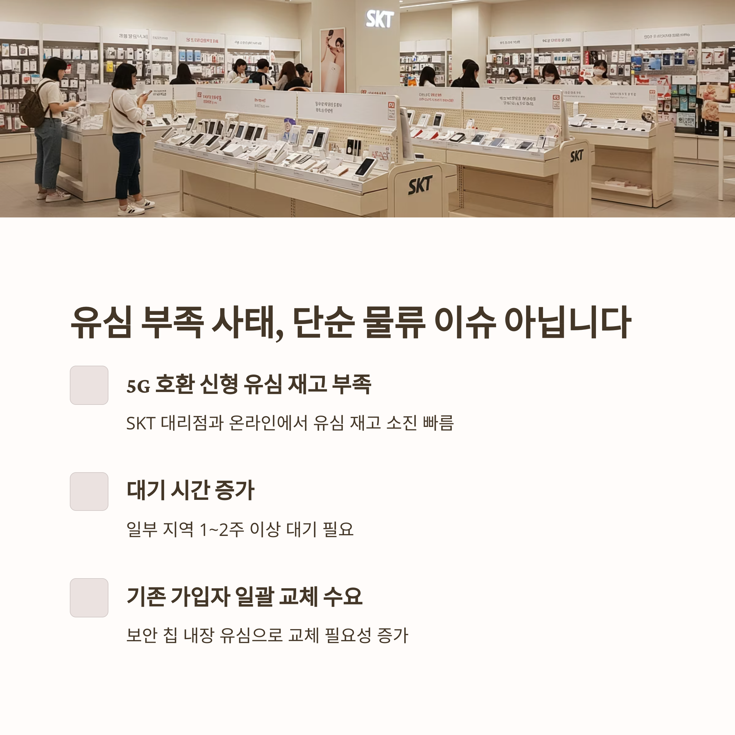 신형 유심(USIM) 재고 부족으로 인해 장기간 교체 대기자가 증가하고 있습니다.